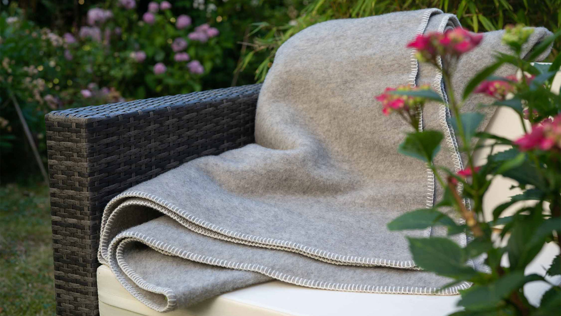 Die Wolle für Ihre neue, attraktive Schurwolldecke stammt zur Hälfte aus Süddeutschland. Diese Schafe mit naturweißer Wolle leben in Naturlandschaften. Sie sorgen durch die natürliche Verbreitung von Pollen und Samen für eine funktionierende und bienenfreundliche Landschaft. Der graue Woll-Anteil stammt vom faszinierenden Gotlandschaf, das auf der schwedischen Insel Gotland zuhause ist. Diese Wolle hat einen mohair-artigen Charakter und besitzt einen leichten Glanz. Die Verarbeitung ist sehr aufwändig, da die langen Haare erst entsprechend gekürzt werden müssen. Die verwendete Wolle ist ungefärbt und von Natur aus kuschelweich.