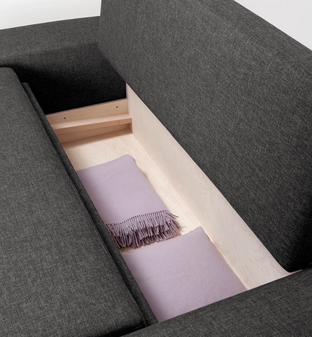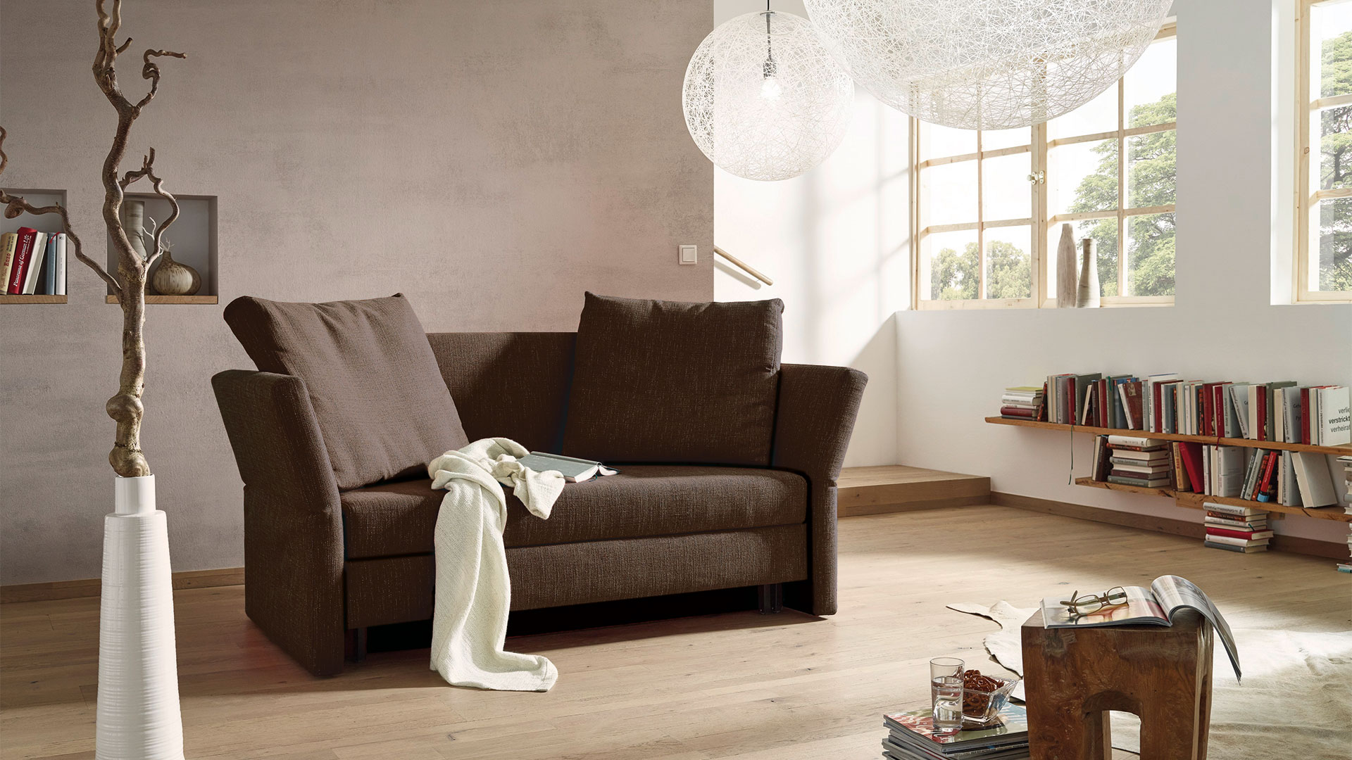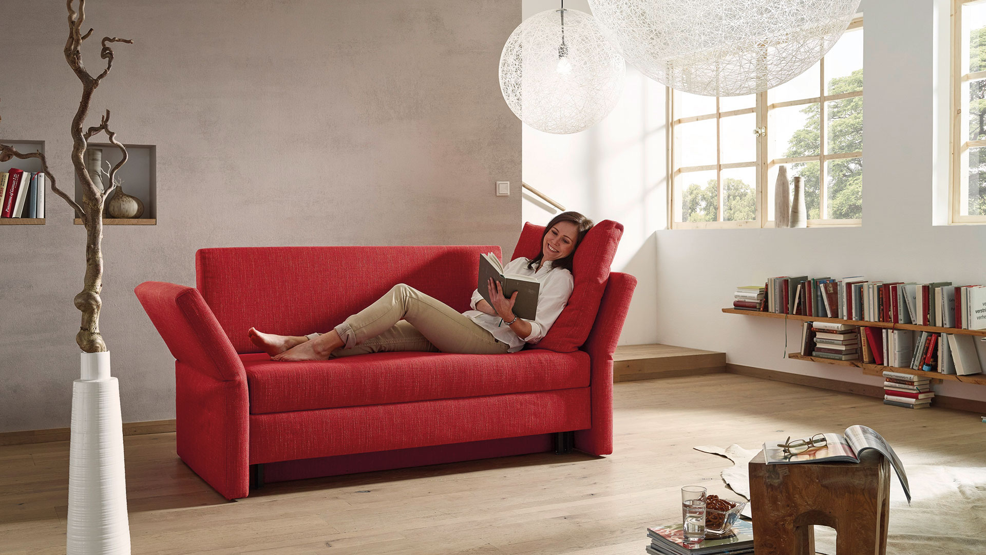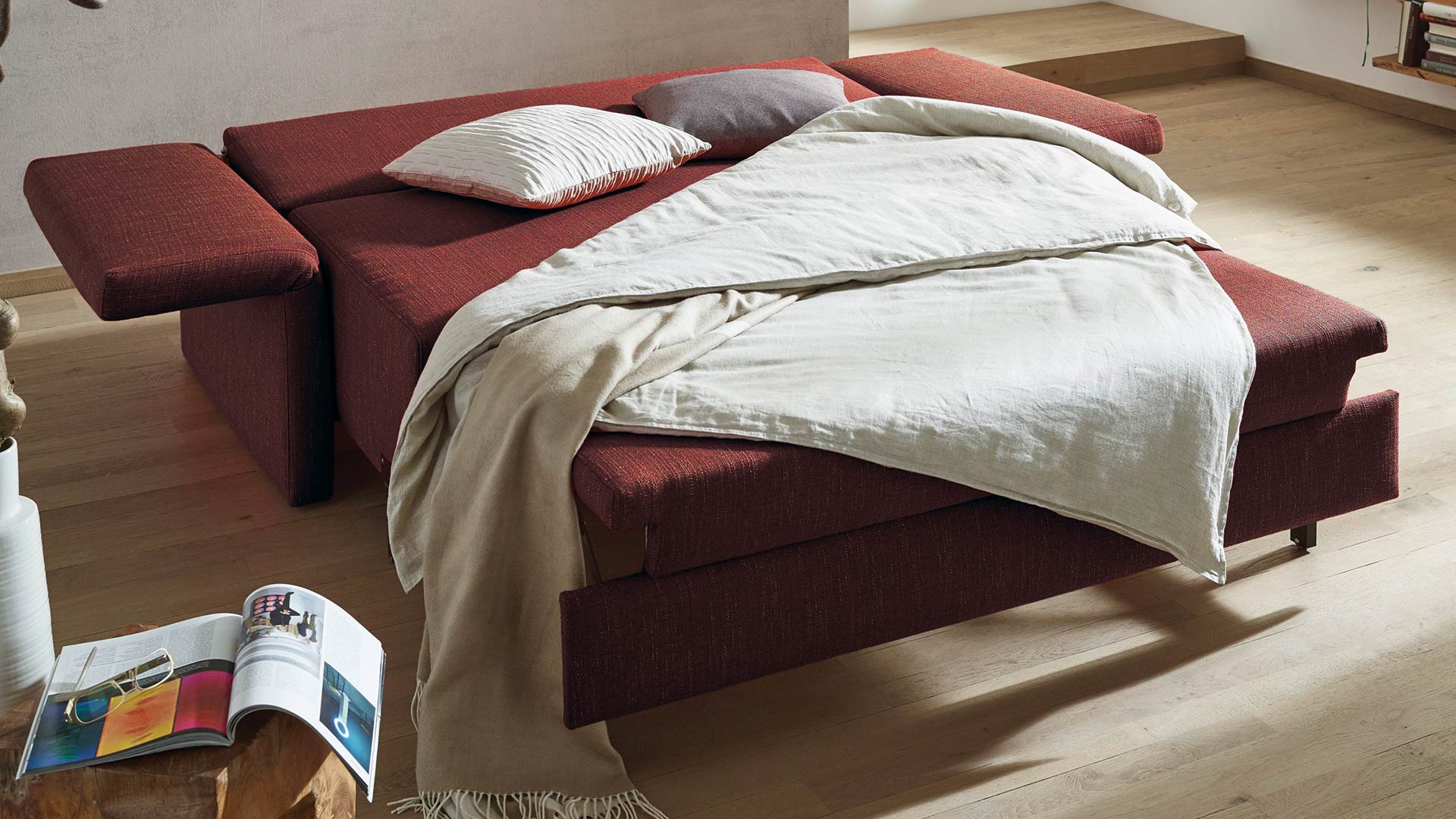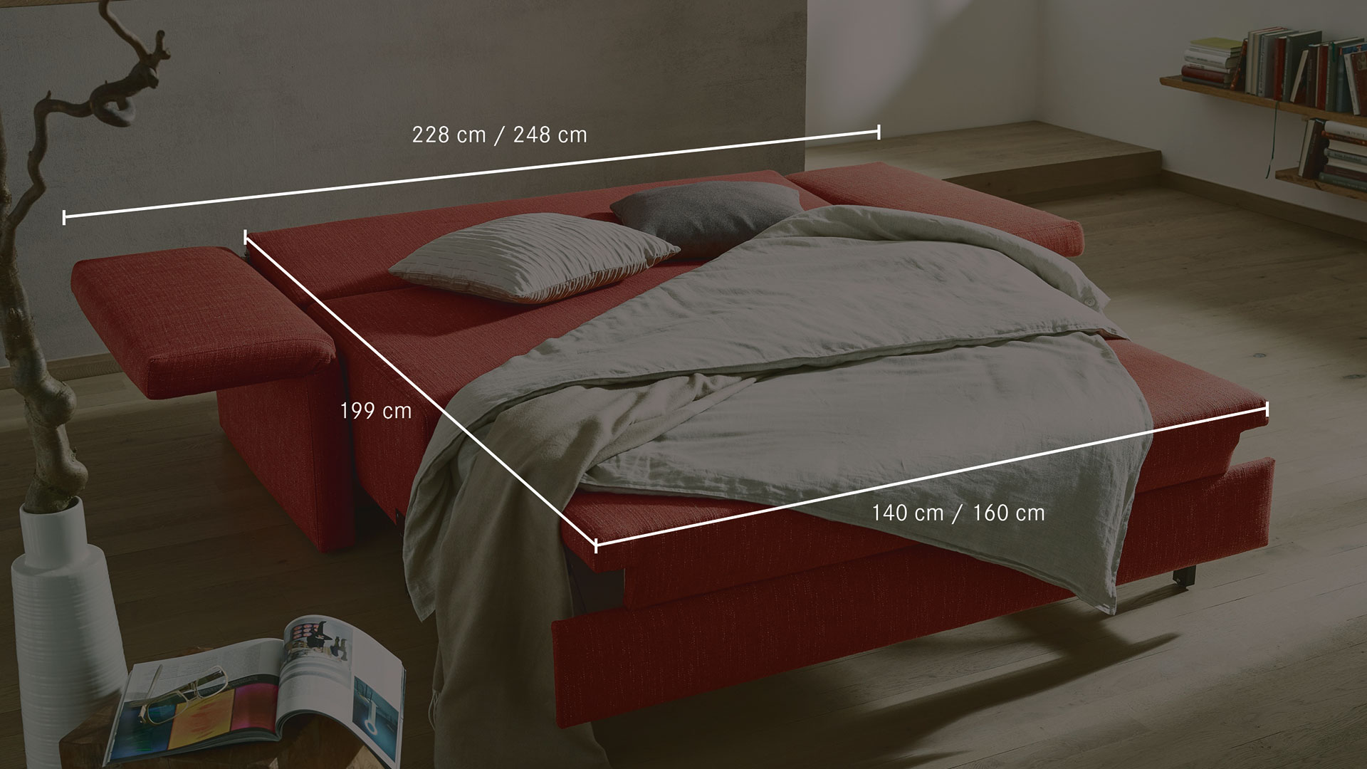 Auch als Gäste-Doppelbett macht Schlafsofa "Diora" eine gute Figur. Schnell umgebaut und das Bettzeug aus dem praktischen integrierten Bettkasten geholt, bietet es Ihren Gästen bequemen Schlafkomfort. Dieses flexibel wandelbare Schlafsofa ist in 2 Breiten, mit einer Polsterung aus Kaltschaum oder Naturlatex und mit verschiedenen Bezugsstoffen erhältlich.