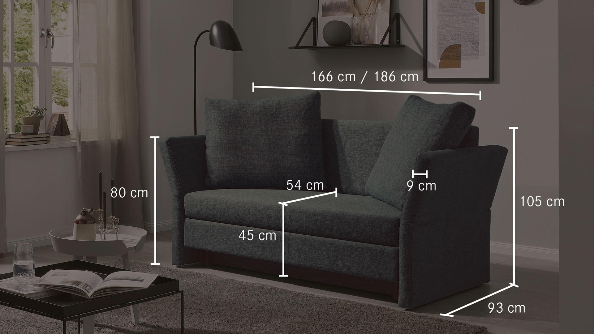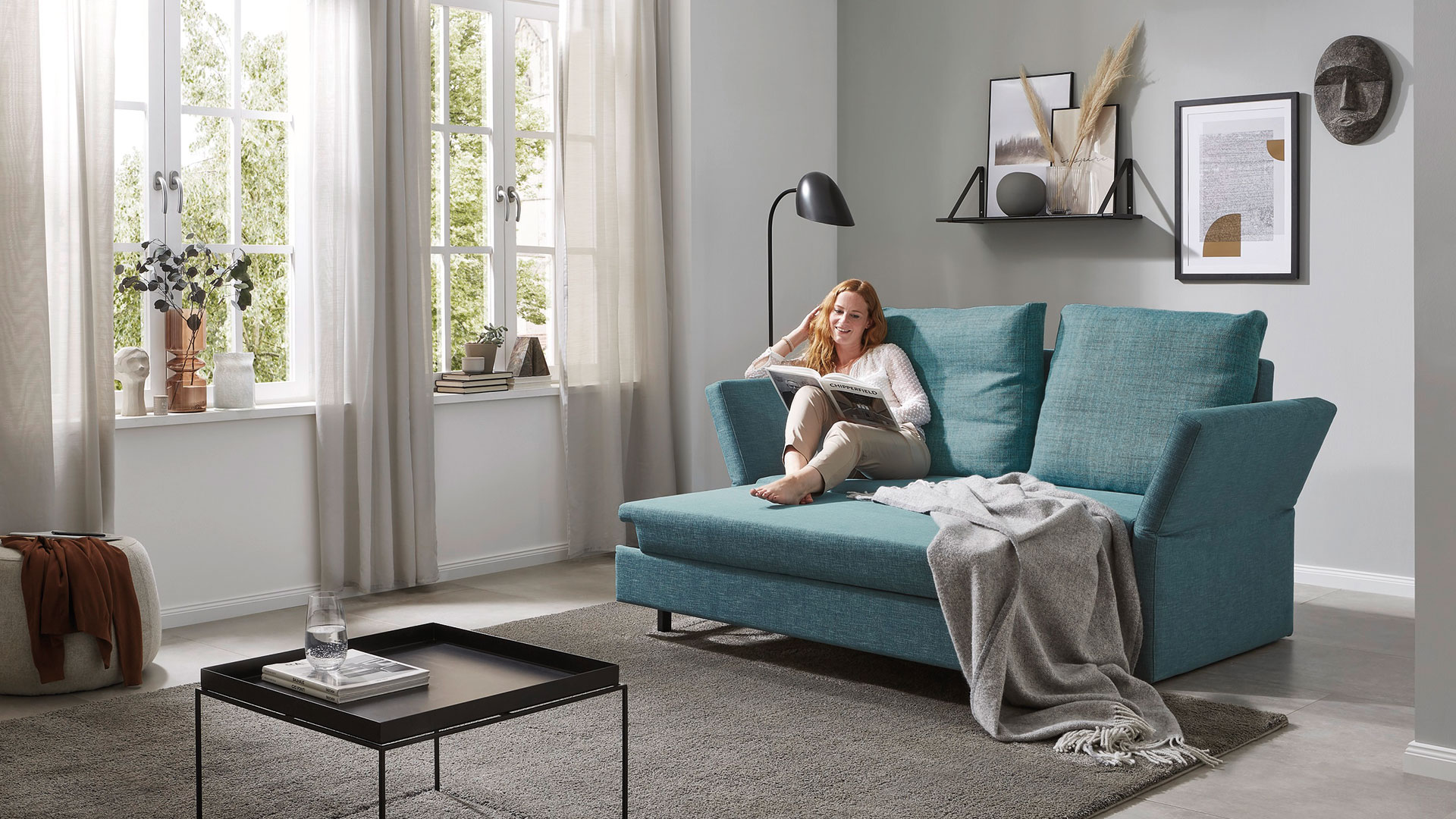 Egal in welcher Position Sie relaxen möchten, auf diesem Schlafsofa finden Sie immer ein gemütliches Plätzchen. Die Armlehnen sind stufenlos verstellbar und können somit ohne Weiteres zu einer Rückenlehne umfunktioniert werden. Noch eines der inkludierten Rückenkissen in Position gebracht, Beine hochgelegt und einfach entschleunigen. "Diora" lässt sich außerdem mit nur wenigen Handgriffen in einen komfortablen Longchair mit großzügiger Sitztiefe verwandeln - geradezu perfekt für einen entspannten Filmabend zu zweit.