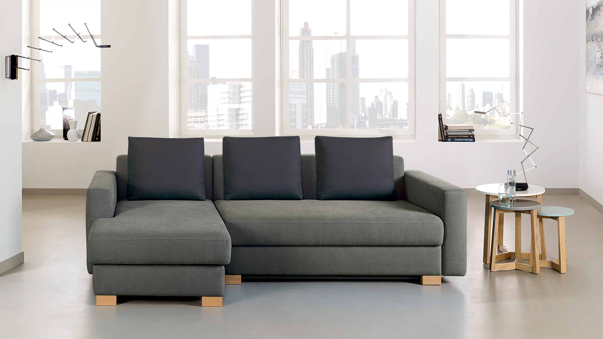 Mit unserem Schlafsofa "Loop" - exklusiv nur bei allnatura erhältlich - schlagen Sie 2 Fliegen mit einer Klappe! Sie erhalten ein gemütliches Sofa mit bequemer Recamiere zum Füße hochlegen. Gleichzeitig ist "Loop" ein geräumiges Schlafsofa für 2 mit großem Bettkasten, in dem tagsüber das Bettzeug verschwindet. Der Umbau ist denkbar einfach: Einfach die Sitzfläche nach vorne schwenken und die Rückenlehne herunterklappen - das geht dank der eingesetzten Qualitätsbeschläge spielend leicht und ohne großen Kraftaufwand.