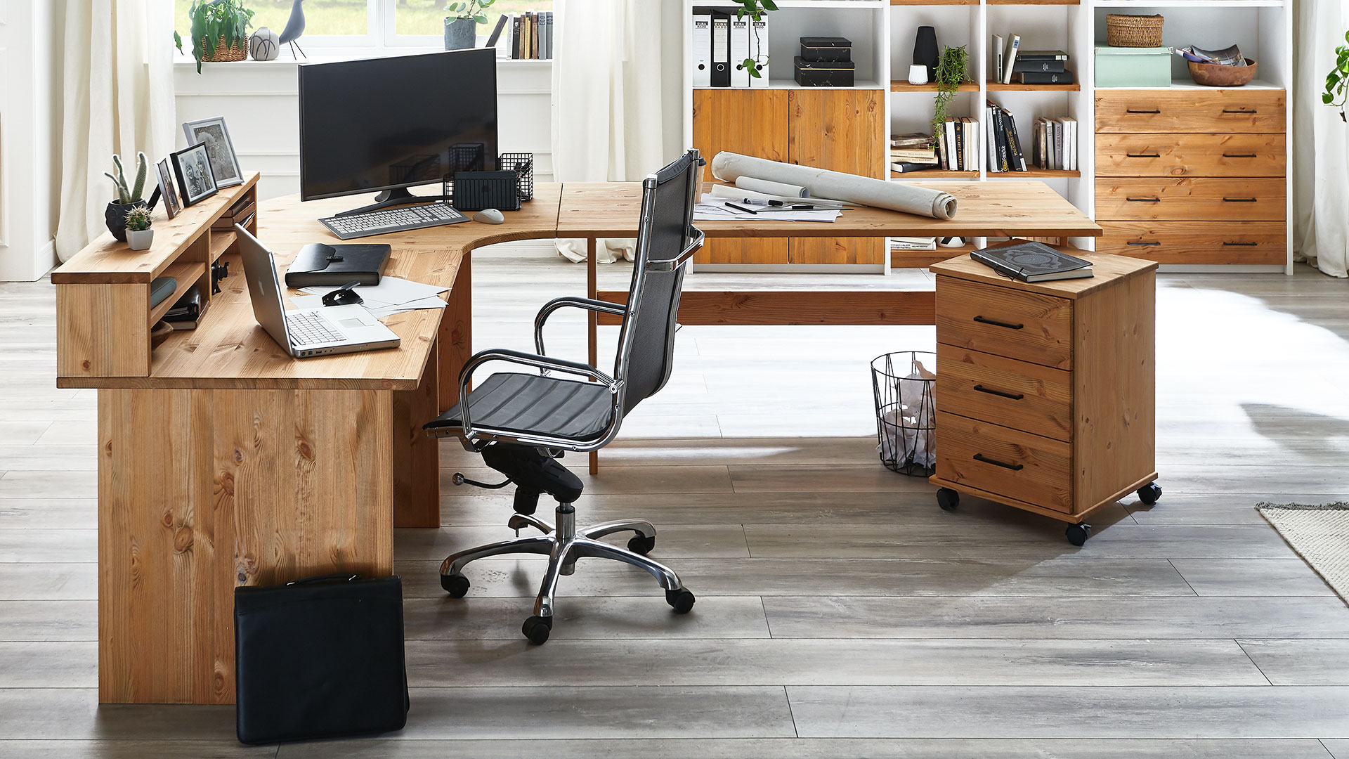 Es stehen Ihnen 2 Schreibtische mit verschiedenen Tischbreiten als Basis zur Verfügung, die mittels Eckplatte oder Ecktisch zu interessanten Arbeitsplatz-Lösungen zusammengefügt werden können. Wenn Sie viel Platz benötigen und etwa Arbeiten verschiedener Art voneinander trennen möchten, können Sie in Ihrem Arbeitszimmer beispielsweise eine wahre "Arbeitsinsel" um sich herum schaffen. So können Sie mit Ihrem Bürostuhl überall bequem agieren.