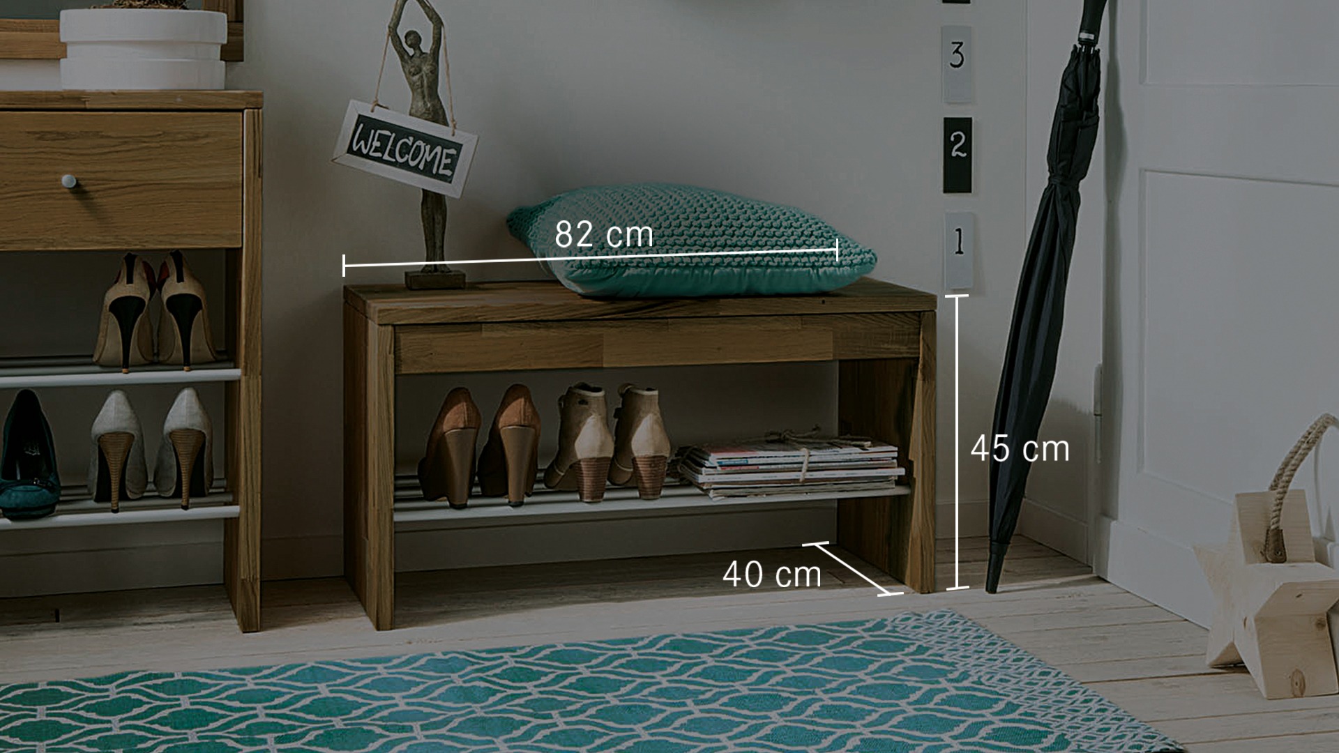 Nehmen Sie entspannt Platz und entledigen Sie sich bequem Ihrer Schuhe, die Sie anschließend ordentlich bis zum nächsten Gebrauch im integriertem Schuhregal verstauen.