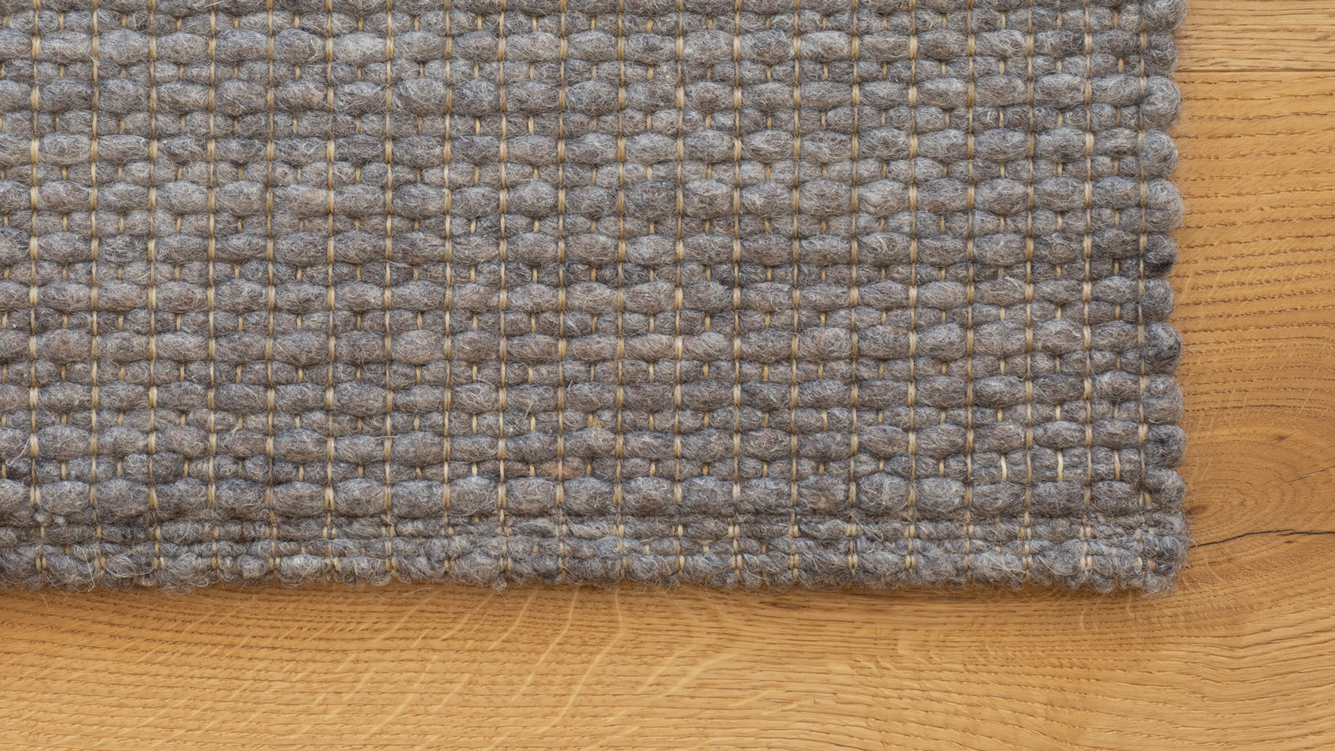 Handgewebt aus edler Schafschurwolle und kühl-glattem Leinen, vereint der Teppich hochwertige Naturmaterialien und einzigartige Handwerkskunst. Die verschiedenfarbigen Fasern schaffen vor allem bei den dunkleren Farbvarianten einen faszinierenden Hell-Dunkel-Effekt, der durch den sanft-natürlichen Glanz der beigemischten Leinenfasern gekonnt betont wird. Die außergewöhnliche, sehr dichte Webstruktur verleiht dem Teppich eine ganz besondere Haptik und unterstreicht sein einmaliges Erscheinungsbild noch weiter.