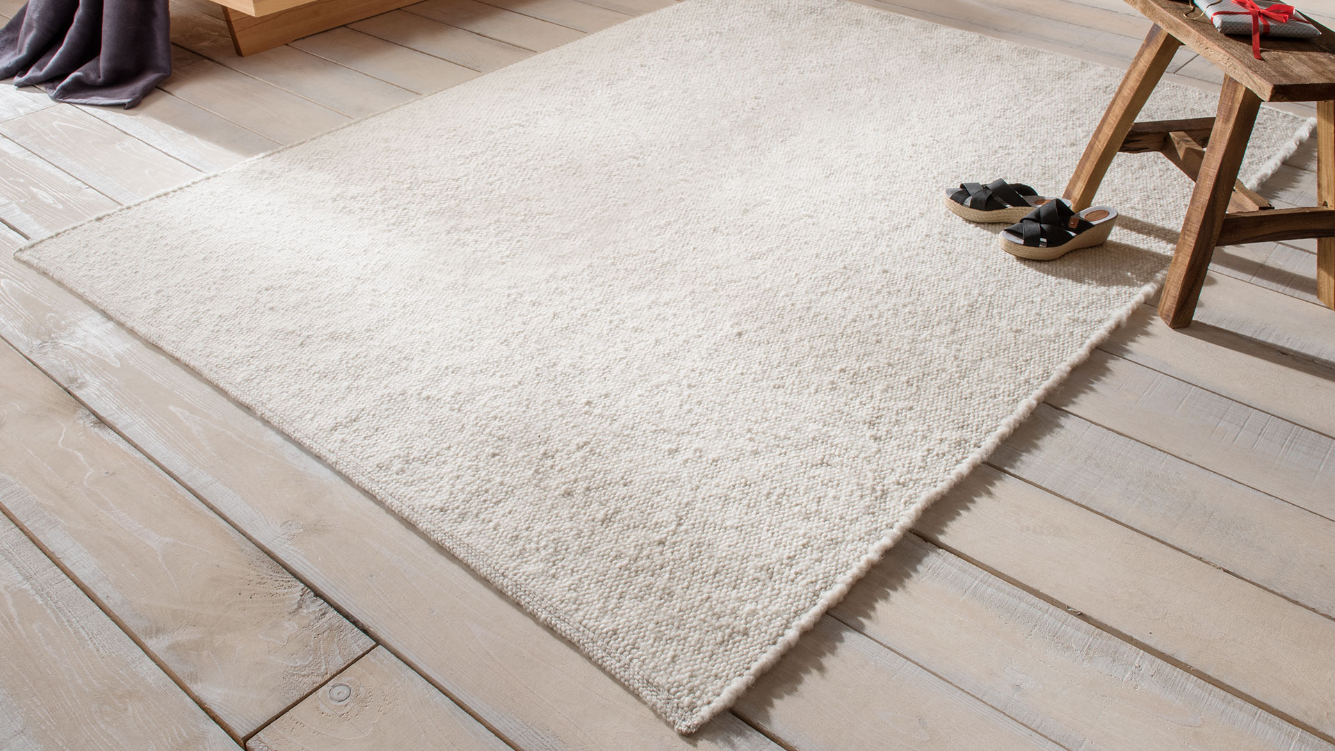 Naturfasern wie Schafschurwolle, Baumwolle, Sisal oder Leinen tragen zudem zu einem ausgeglichenen Wohnklima bei, denn sie können Feuchtigkeit aus der Luft aufnehmen und wieder abgeben.Schurwollteppich "Lana"