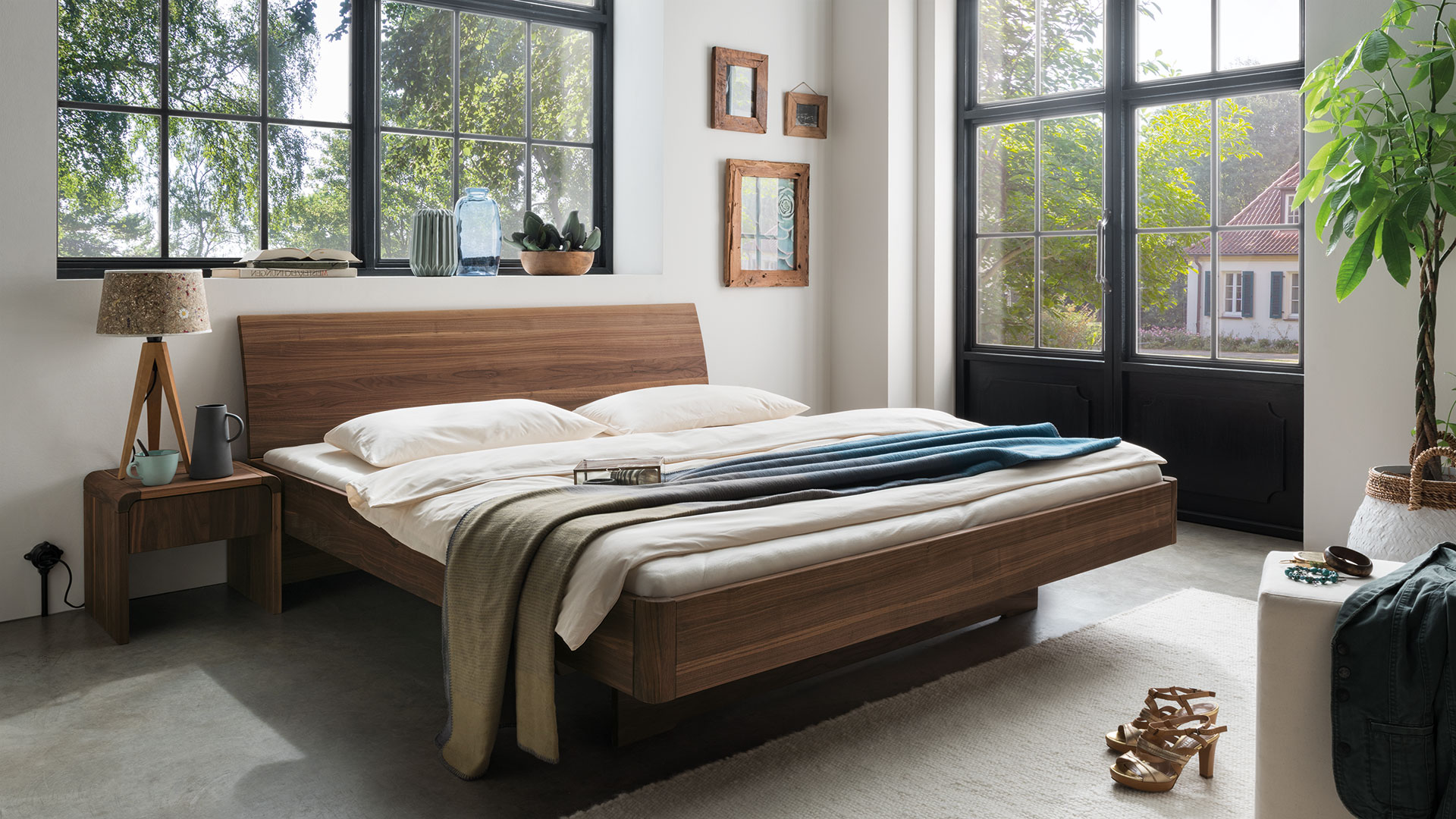 Vollendete Eleganz. Unser Schwebebett "Nocellara" vereint harmonisches Design mit der unvergleichlich wohnlichen Wirkung von Massivholz. Große Flächen bereiten die Bühne für vielseitige Charakterdarsteller aus der Natur: