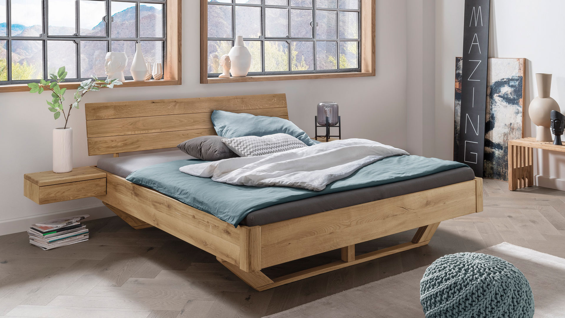 Das zeitlose Schwebebett "Novito" glänzt mit seinem elegant-kubischen Design.