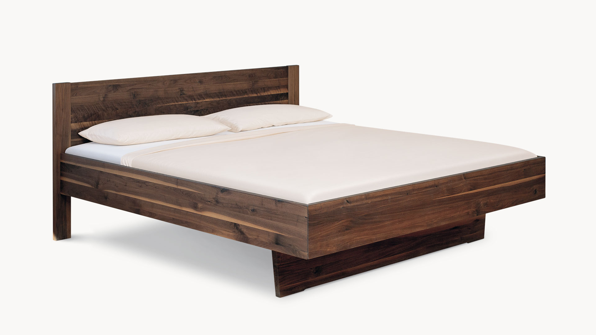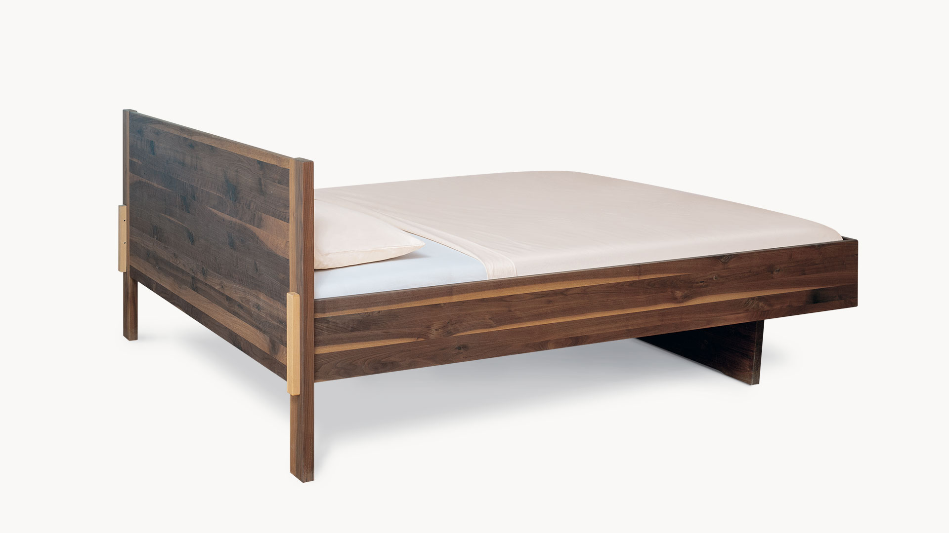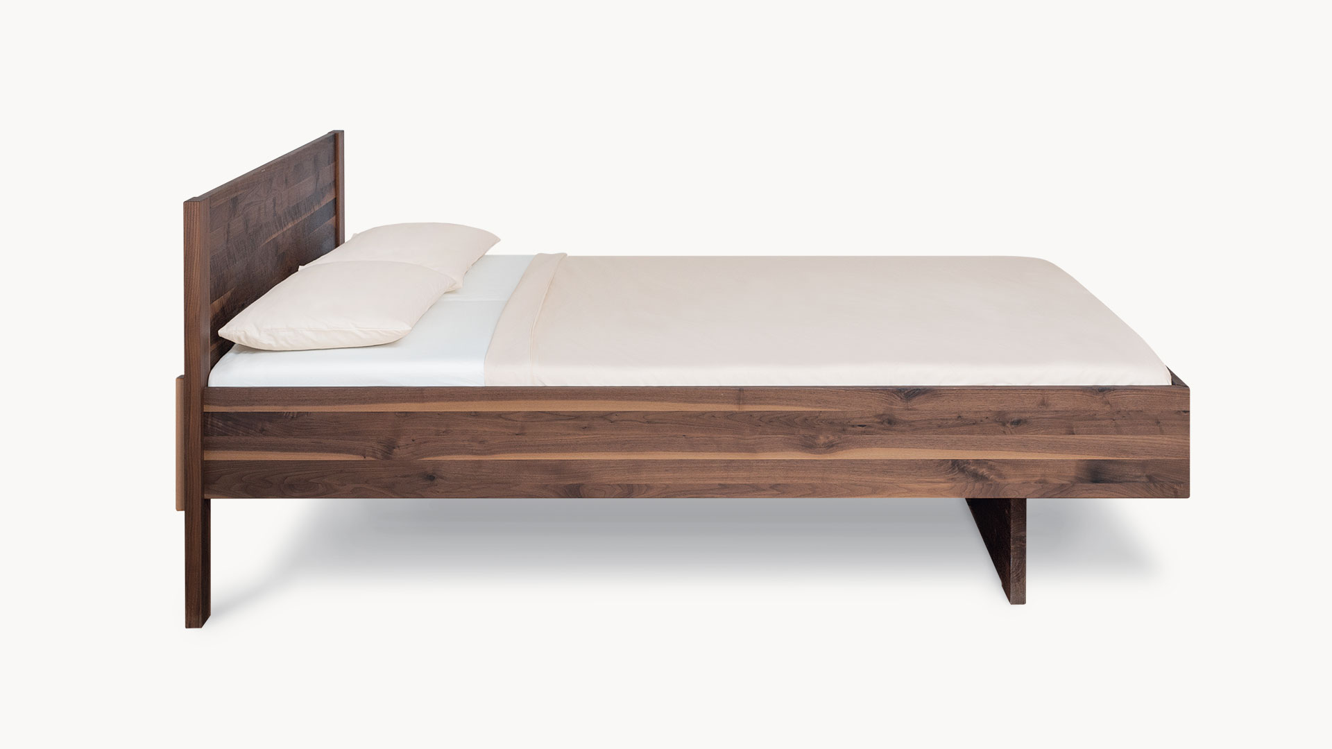 Dieses unaufdringliche, zeitlose Massivholzbett besticht durch seine stille Eleganz. Sie möchten ein komplett metallfreies Bett in Ihrer Wunsch-Holzart und Ihrer bevorzugten Rahmenhöhe?