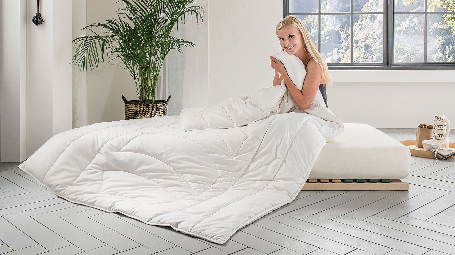 Bei Duo-Bettdecken werden zwei Deckenteile separat gesteppt und anschließend zu einer Decke vereint. So entsteht eine besonders wärmende Bettdecke.