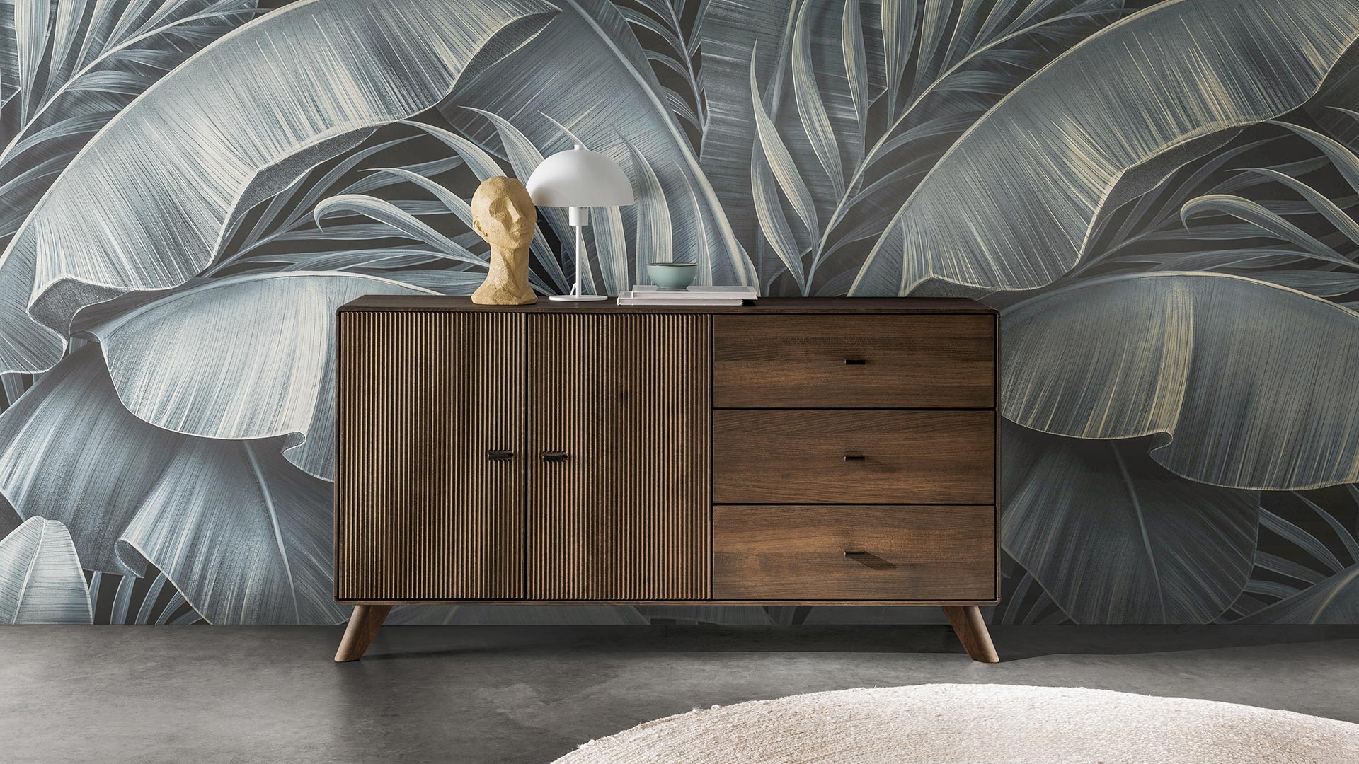 Erhältlich in drei Größen, passt sich das schöne Sideboard perfekt an Ihren Stauraumbedarf an – von kompakt bis zur besonders großzügigen Variante. Alle Modelle bieten mit Schubladen und Schrankelementen ausreichend Platz für Ihre Habseligkeiten - sei es Geschirr, Wäsche oder Aktenordner. Variante 02 bietet zusätzlich ein offenes Fach, das Raum für Dekorationen oder Lieblingsstücke schafft und die geschlossene Struktur auflockert.