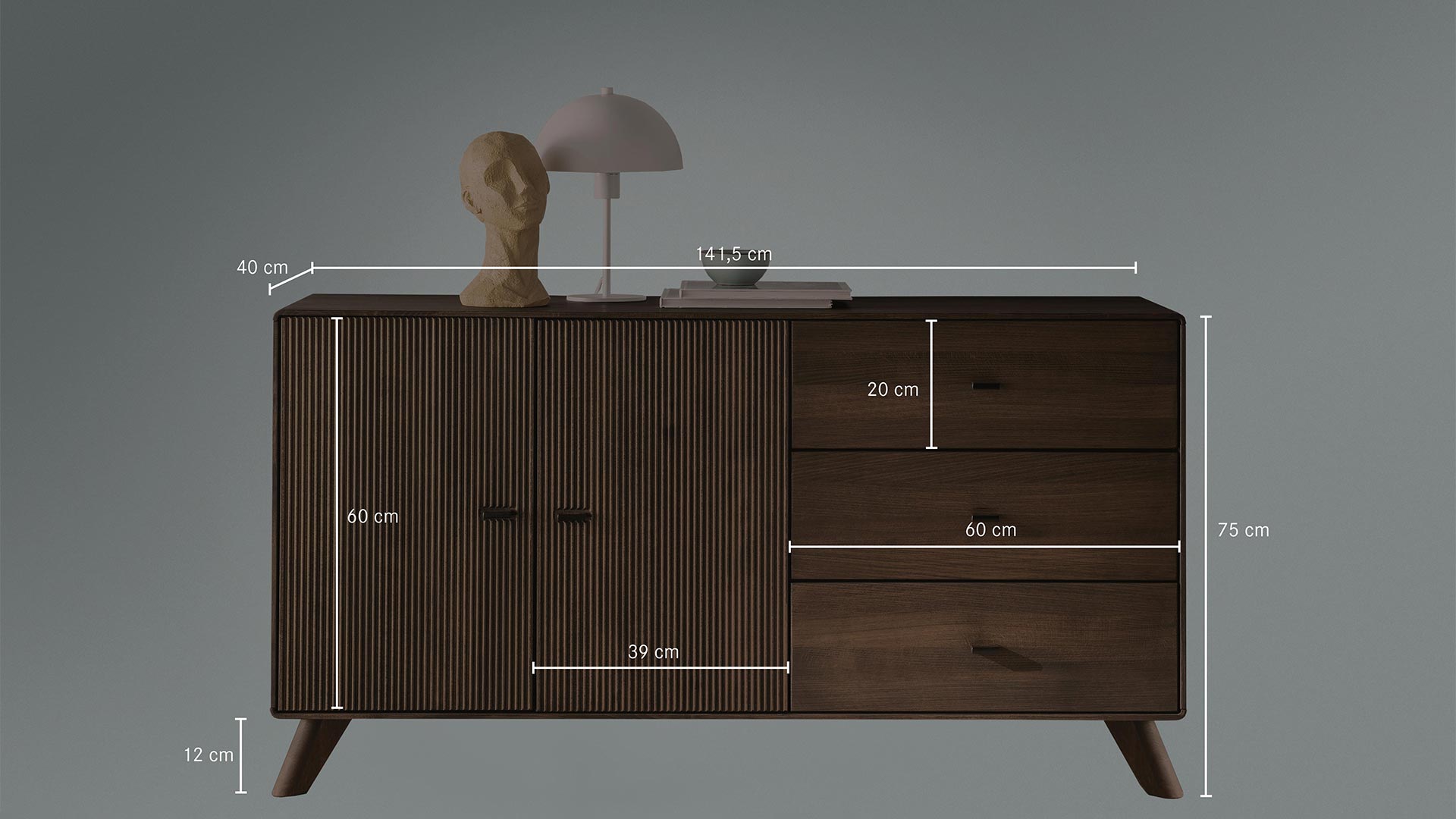 Sideboard "Lado" verbindet zeitloses Design mit durchdachter Funktionalität und bringt wohnliche Wärme in Ihr Zuhause. Gefertigt aus massivem Kernbuchenholz im edlen Tabak-Finish, strahlt es natürliche Eleganz aus. Die markanten Riffelungen an den Türen und die deutlich ausgestellten Füße verleihen dem Sideboard eine moderne Note, während die sanft abgerundeten Kanten den charakteristischen Stil der "Lado"-Serie betonen.