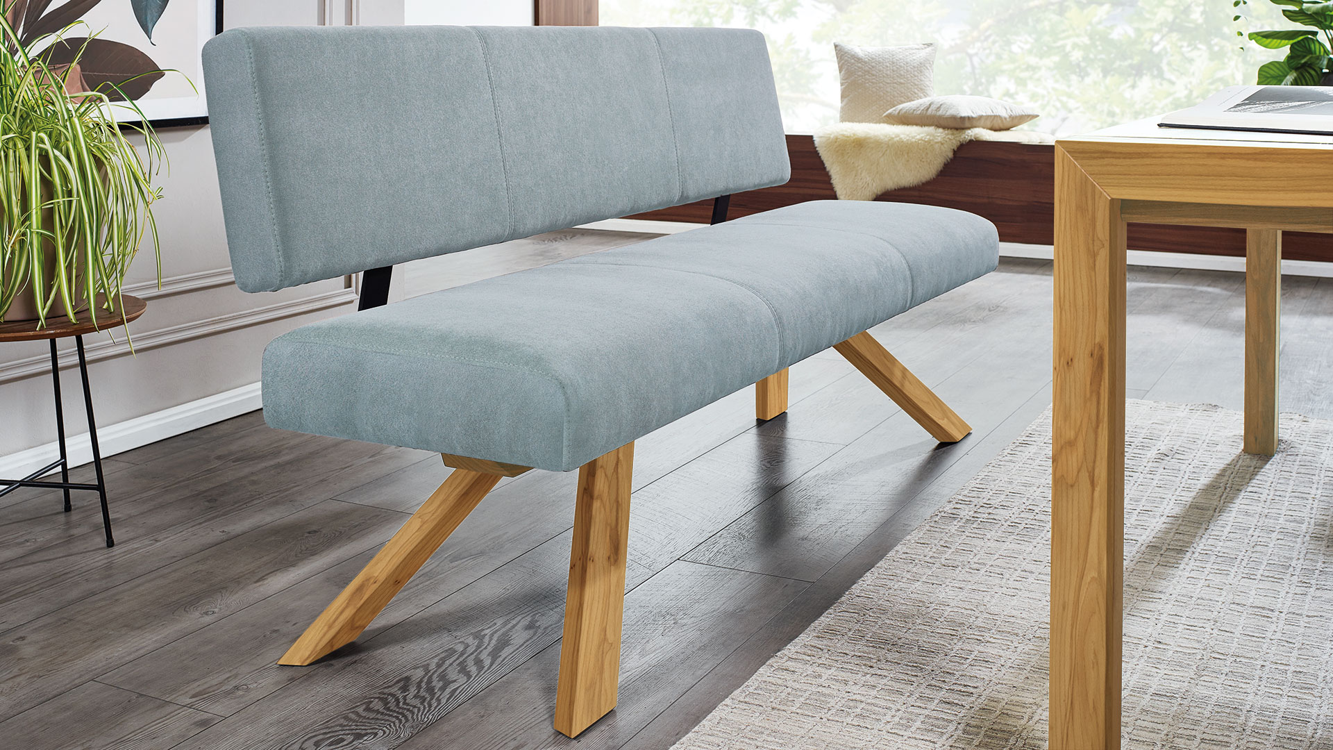 ...wenn Sie nicht gerne Gäste haben. Denn auf dieser luxuriös gepolsterten Sitzbank bleibt man gerne etwas länger sitzen. Die großzügig ausgestellten Bankbeine bringen skandinavisches Flair in Ihr Esszimmer. Wählen Sie aus vier erlesenen Bezugsstoffen in unzähligen Lieblingsfarben Ihren Wunschbezug.