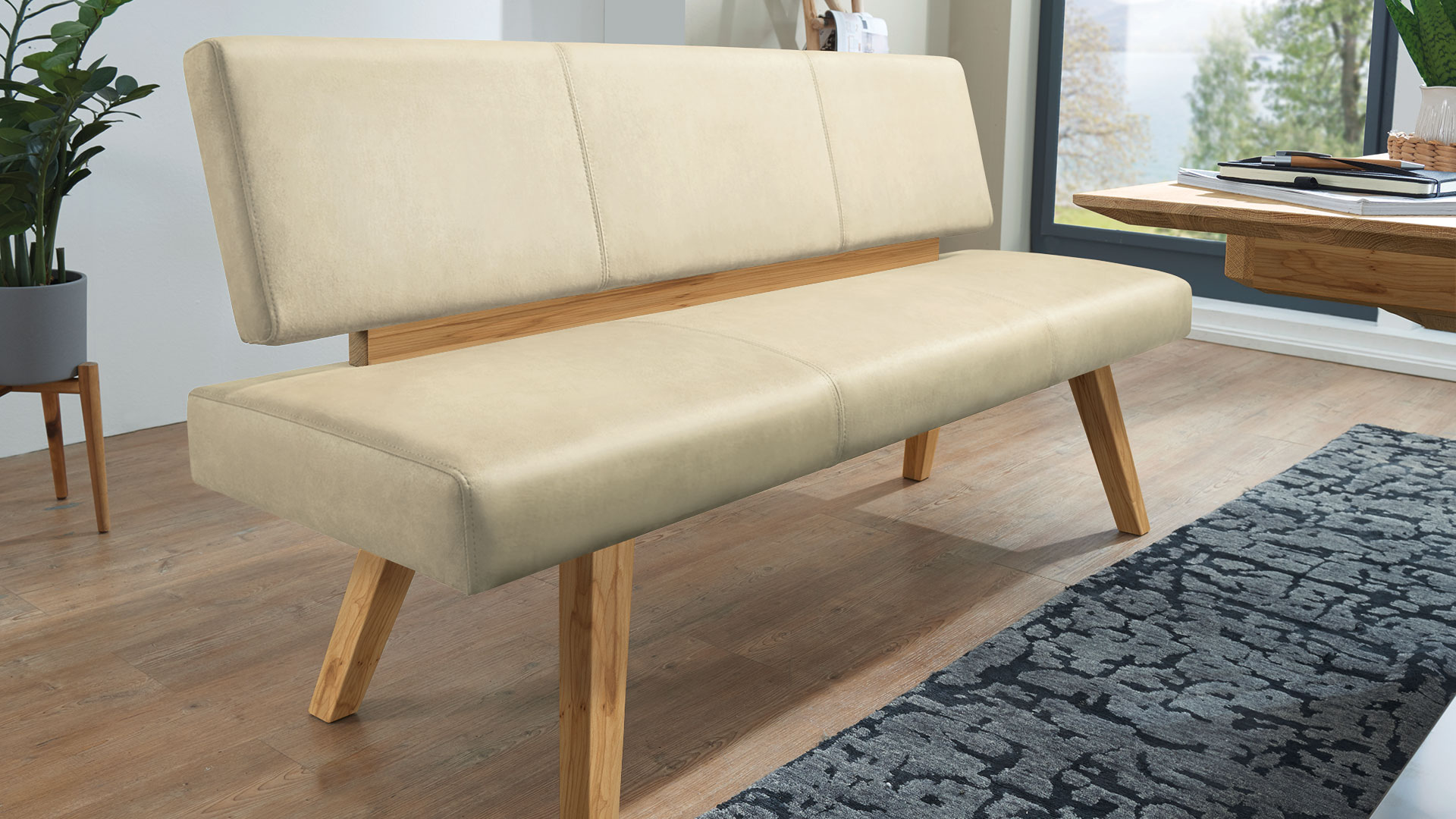 ...erwartet Sie mit "Sentara". Denn Sie werden oft der Verlockung erliegen, sich auf dieser herrlich weichen Bank niederzulassen. Die durchgehende Lehnenhalterung aus Massivholz sorgt für eine fulminante Optik. Im faszinierenden Kontrast dazu steht die filigrane Beinlösung.