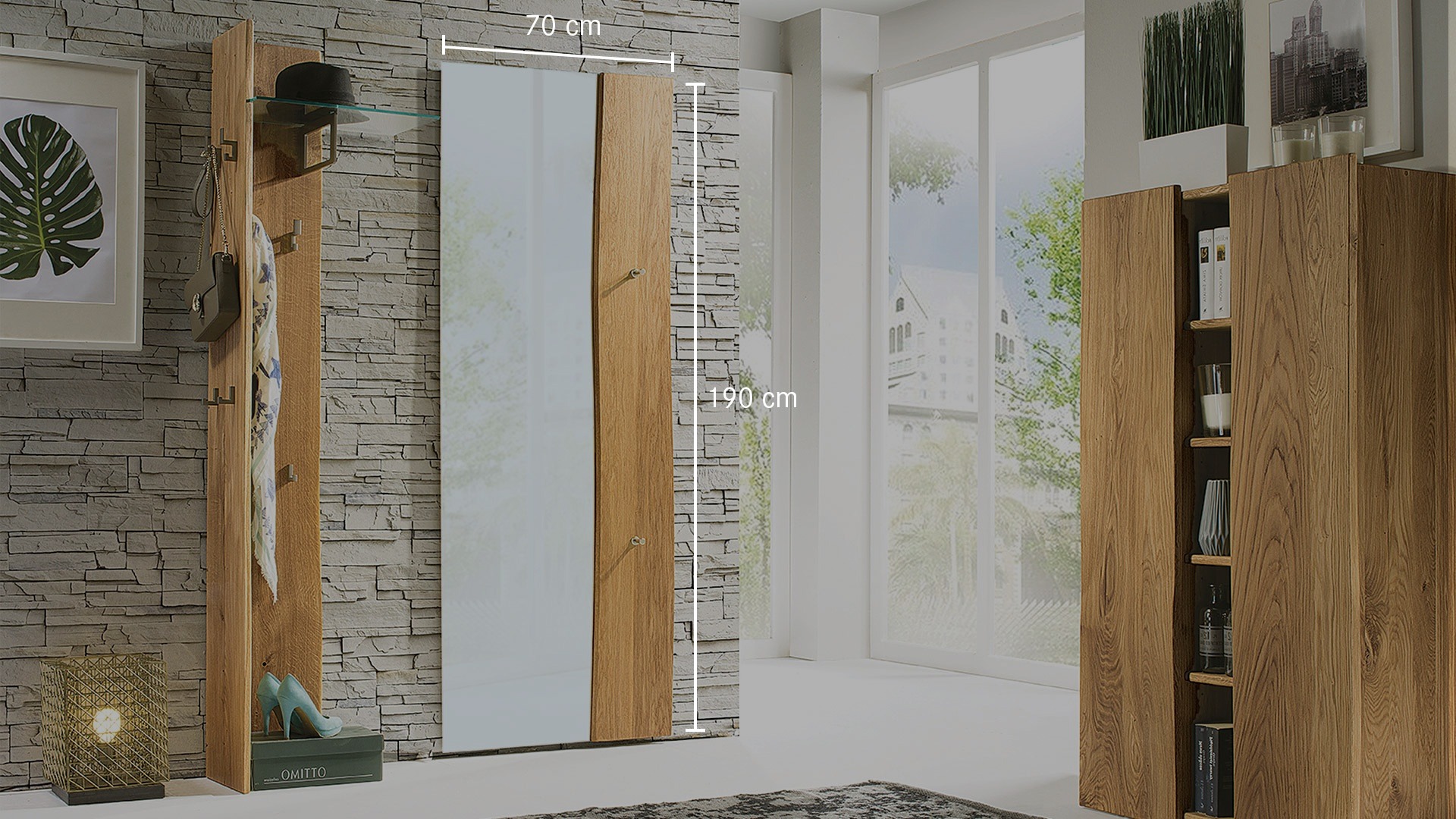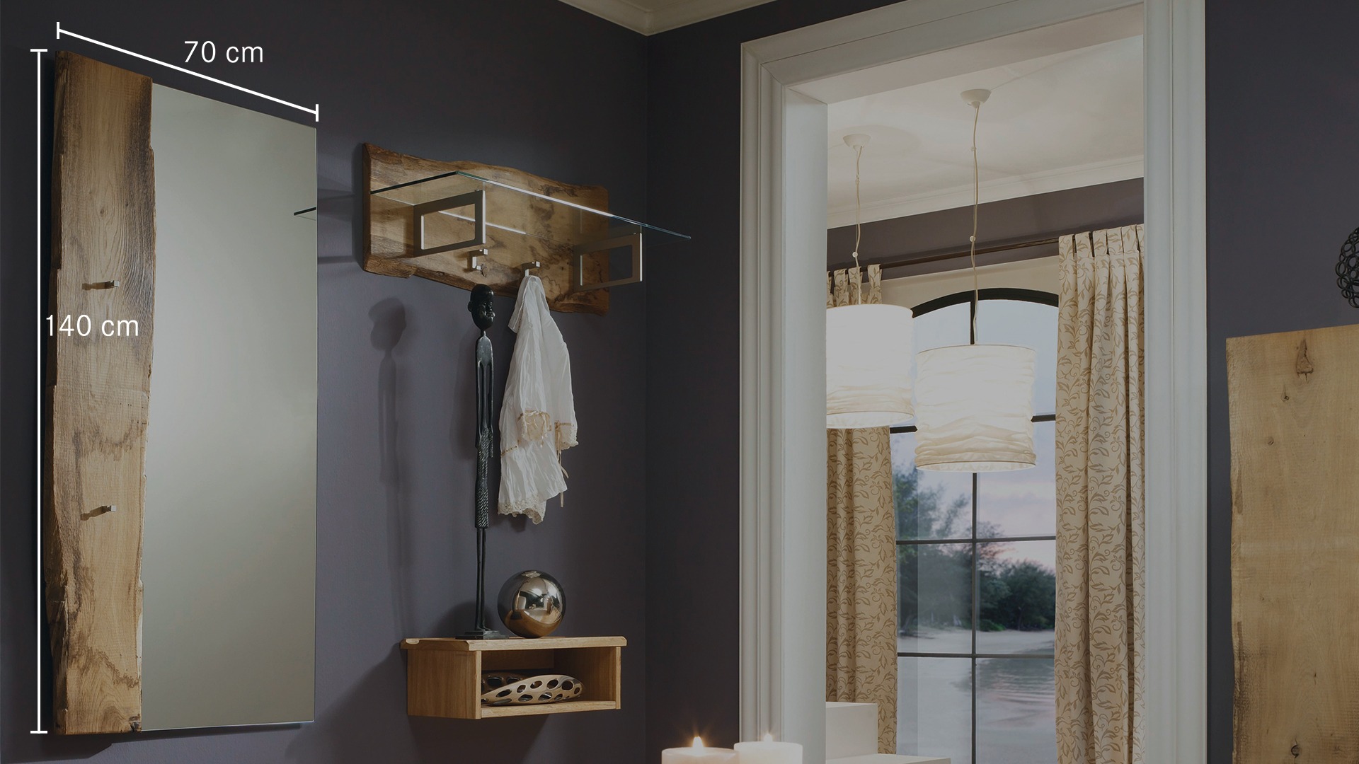 Diese edlen Spiegel spielen gekonnt mit dem faszinierenden Gegensatz von kühlem Spiegelglas und der Natur nachempfundenen Holzstrukturen. "Loca" wird alle Blicke auf sich ziehen.