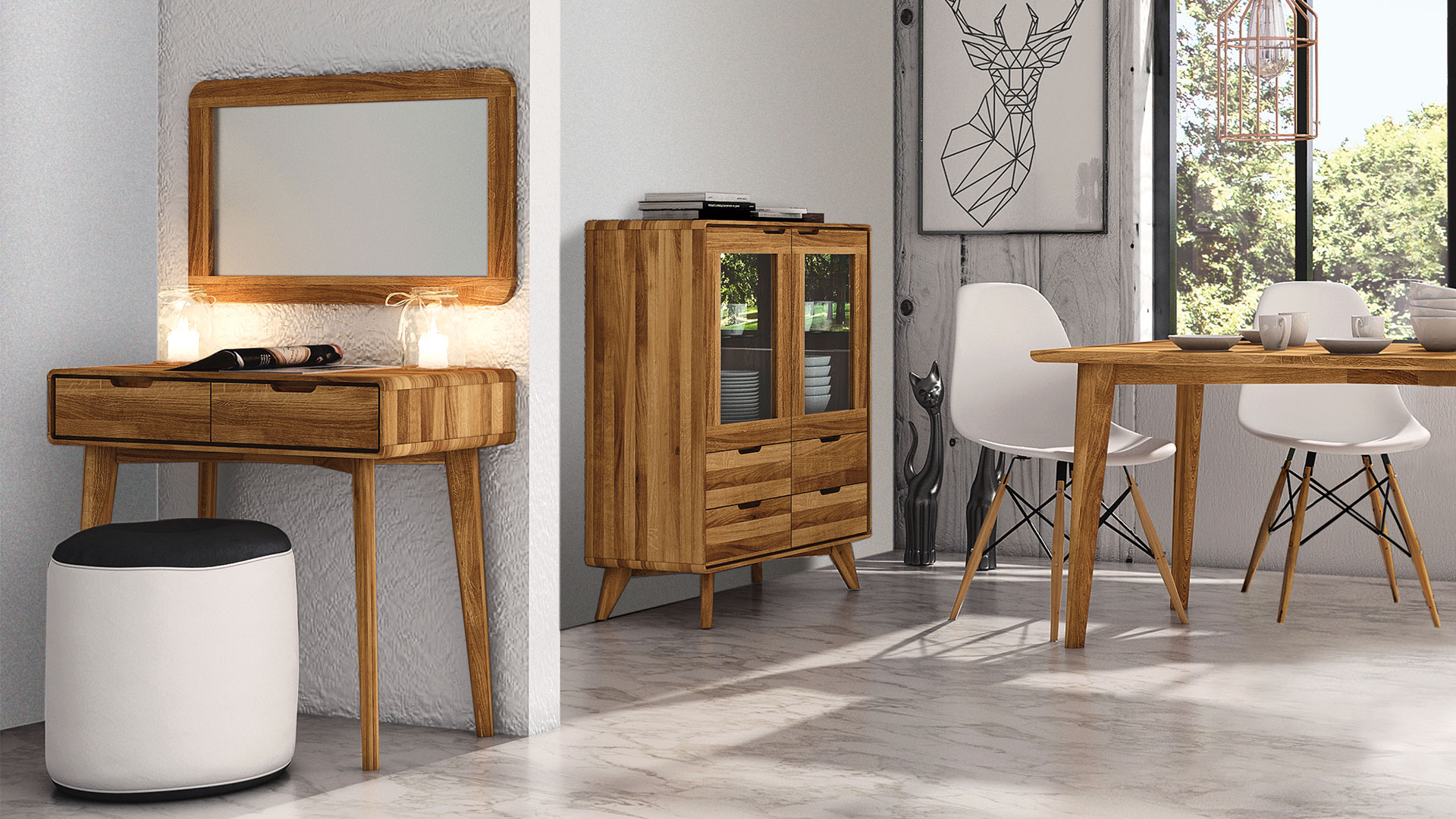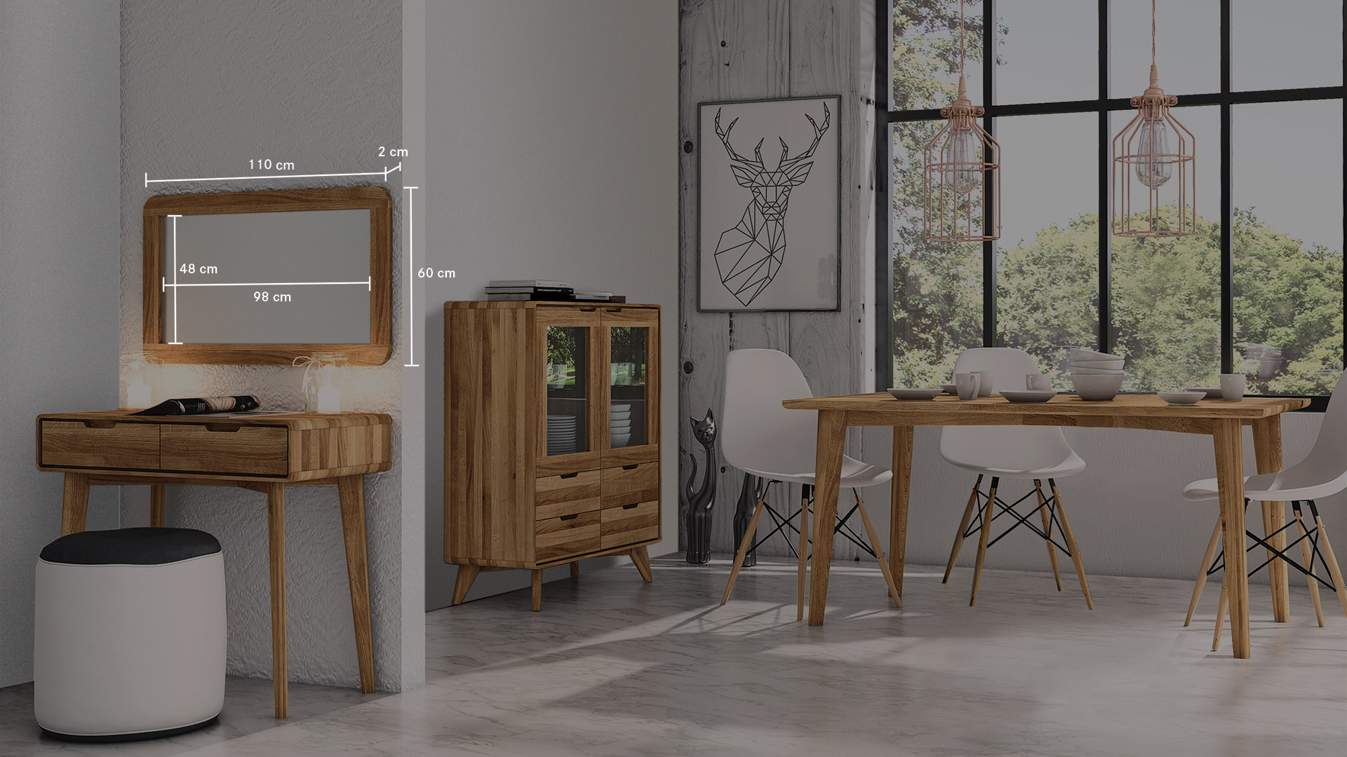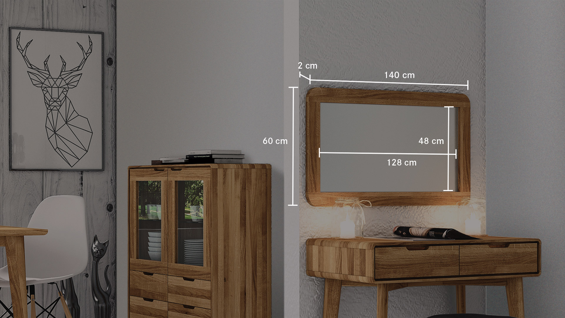 "Tario" ist ein klassischer Wandspiegel, den Sie in Kernbuche oder Wildeiche erhalten. Hier trifft klassische Form auf ein großes Stück Natur.