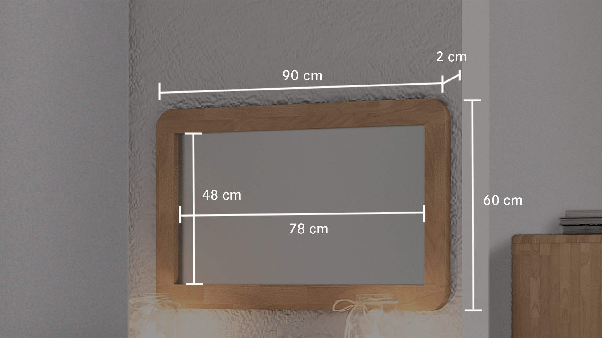Dank den abgerundeten Ecken sorgt er für eine harmonische Stimmung und findet dank der unterschiedlich wählbaren Größen in jedem Zimmer einen wohligen Platz. Ob im Schlaf- oder Wohnzimmer, im Bad oder auch in der Diele - mit diesem schadstoffgeprüften Spiegel verlieren Sie garantiert nie den Durchblick!