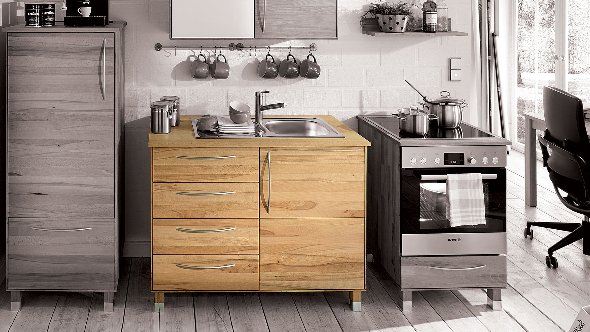 Unser Spülenschrank "Culinara" aus Massivholz überzeugt nicht nur funktional, er verleiht Ihrer Küche ein edles Flair.