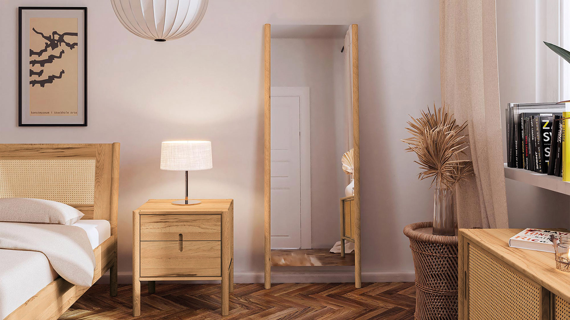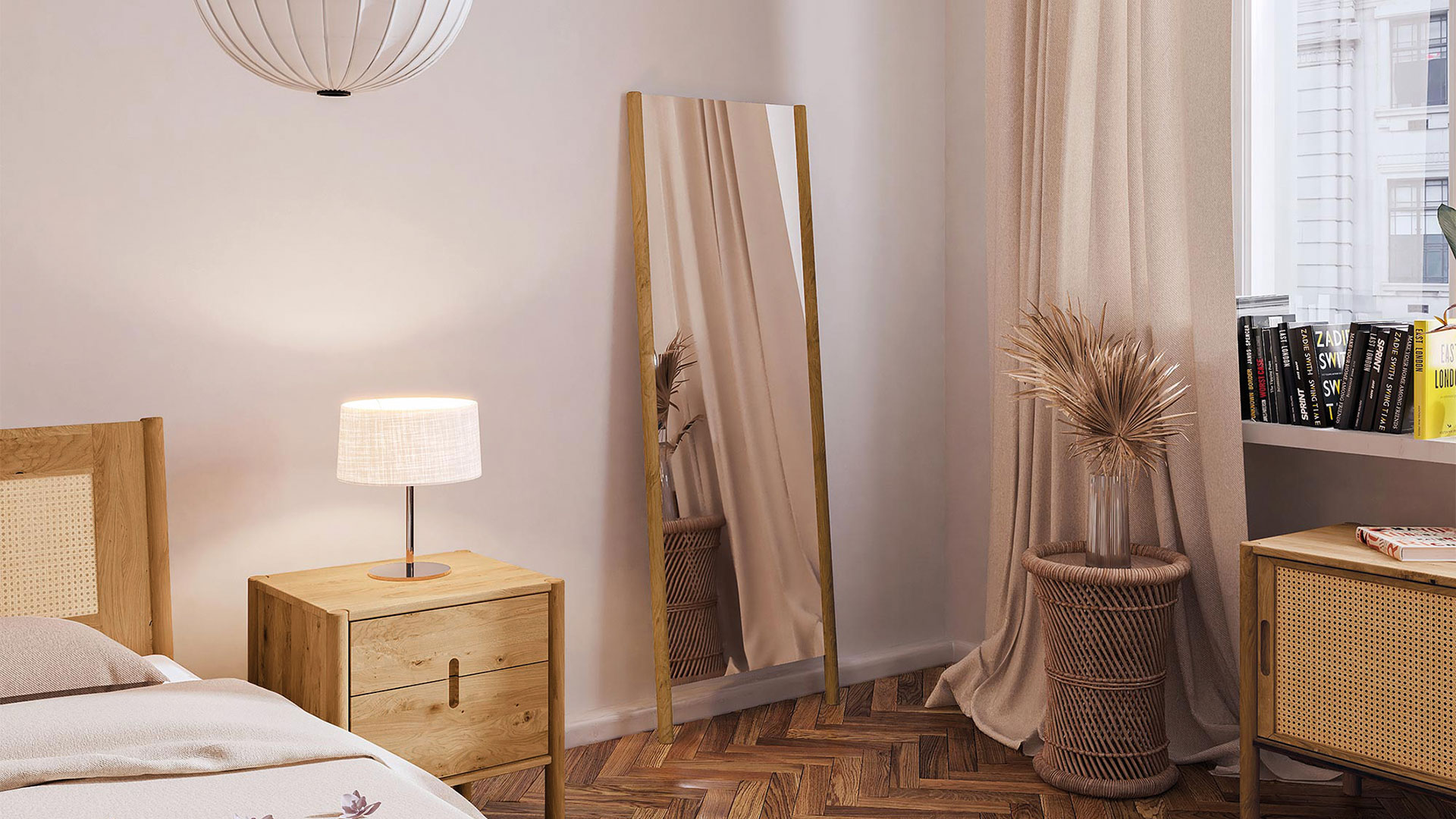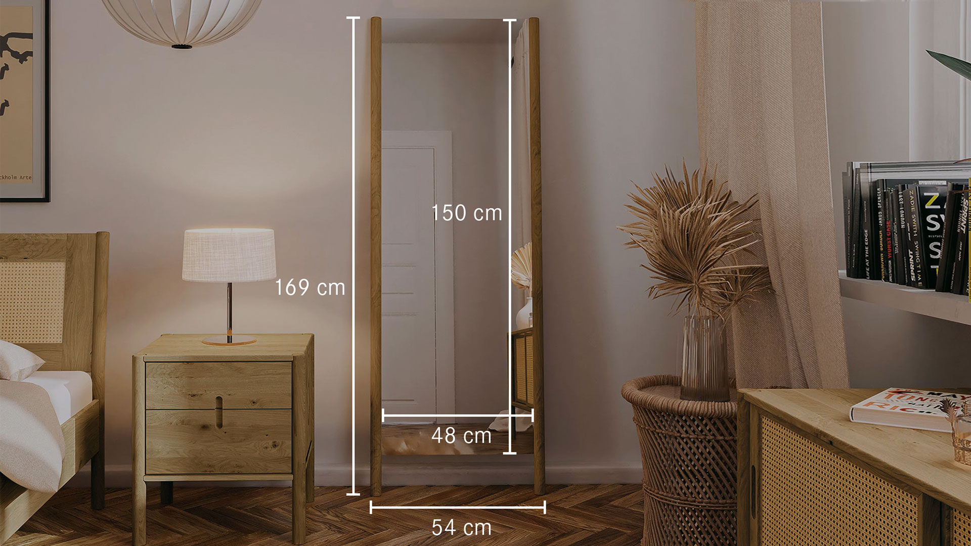Standspiegel "Rota" zeigt Ihnen gerne, wie Sie aussehen. Ob im Schlafzimmer direkt nach dem Ankleiden oder in der Diele für einen letzten prüfenden Blick vor dem Gehen. Und auch der Spiegel selbst macht mit seiner schlanken Einfassung aus Massivholz-Rundstäben eine ausgezeichnete Figur. Für einen sicheren Stand sorgt der klappbare Stützfuß. Sie können den schönen Standspiegel aber auch einfach an die Wand lehnen - ganz, wie es für Sie besser passt.