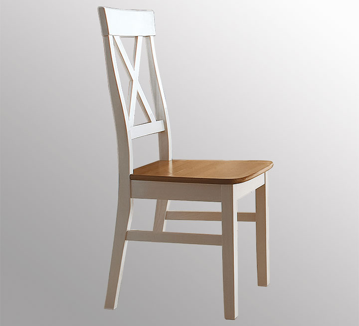 Ebenfalls im wohnlichen Landhausstil erscheint unser Stuhl "Mascella". Sie entscheiden zwischen Natur oder in Farbe. Die Variante mit geölter Oberfläche lässt das einzigartige Massivholz hervorragend zum Vorschein treten. Das Holz wird mit einer natürlichen Oberflächenbehandlung geschützt und behält seine natürliche Farbe und Maserung. Sie erhalten diesen Esszimmerstuhl darüber hinaus mit weißer Oberfläche. Die Lasur erhält die Struktur des Holzes und macht den Esszimmerstuhl vielseitig kombinierbar. Der Mix aus Weiß und Holz wird im Landhausstil gerne verwendet und wirkt schick und wohnlich. Kombinieren Sie zum Beispiel einen weißen Stuhl zu Ihrem Esstisch aus Massivholz geölt.