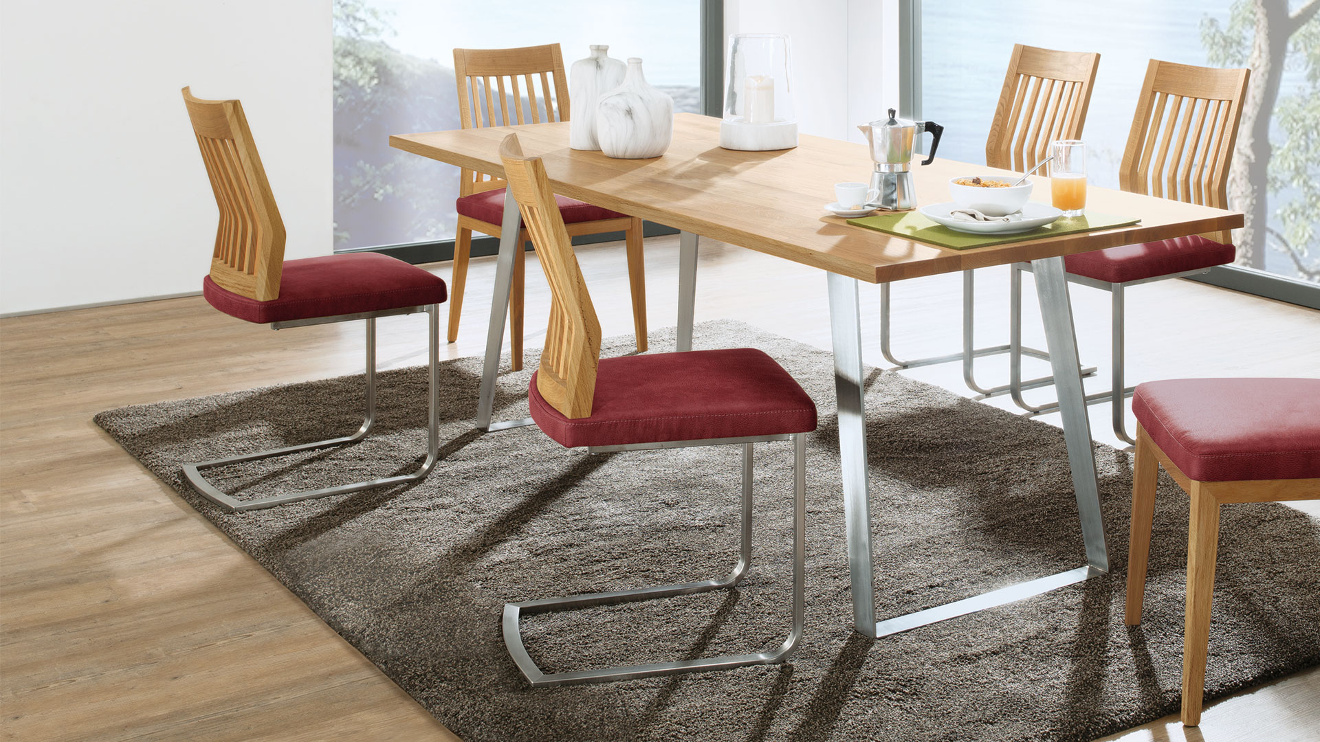 Genießen Sie die Kombination aus Natürlichkeit und stilvoller Eleganz. Sie erhalten „Espada“ mit Wollfilz- oder Lederbezug - wahlweise mit einem Gestell aus Edelstahl oder mattschwarz. Die gemütliche Kaltschaumpolsterung rundet den optimalen Sitzkomfort ab.