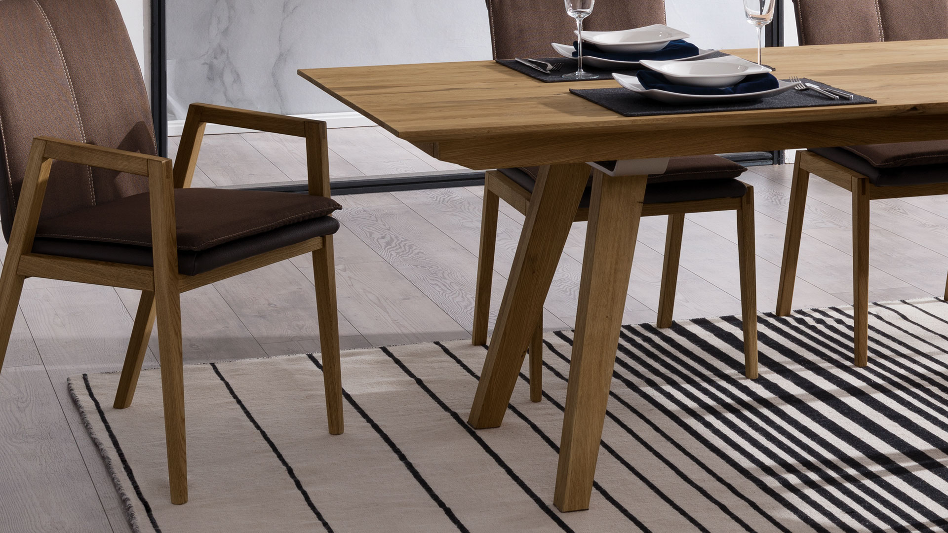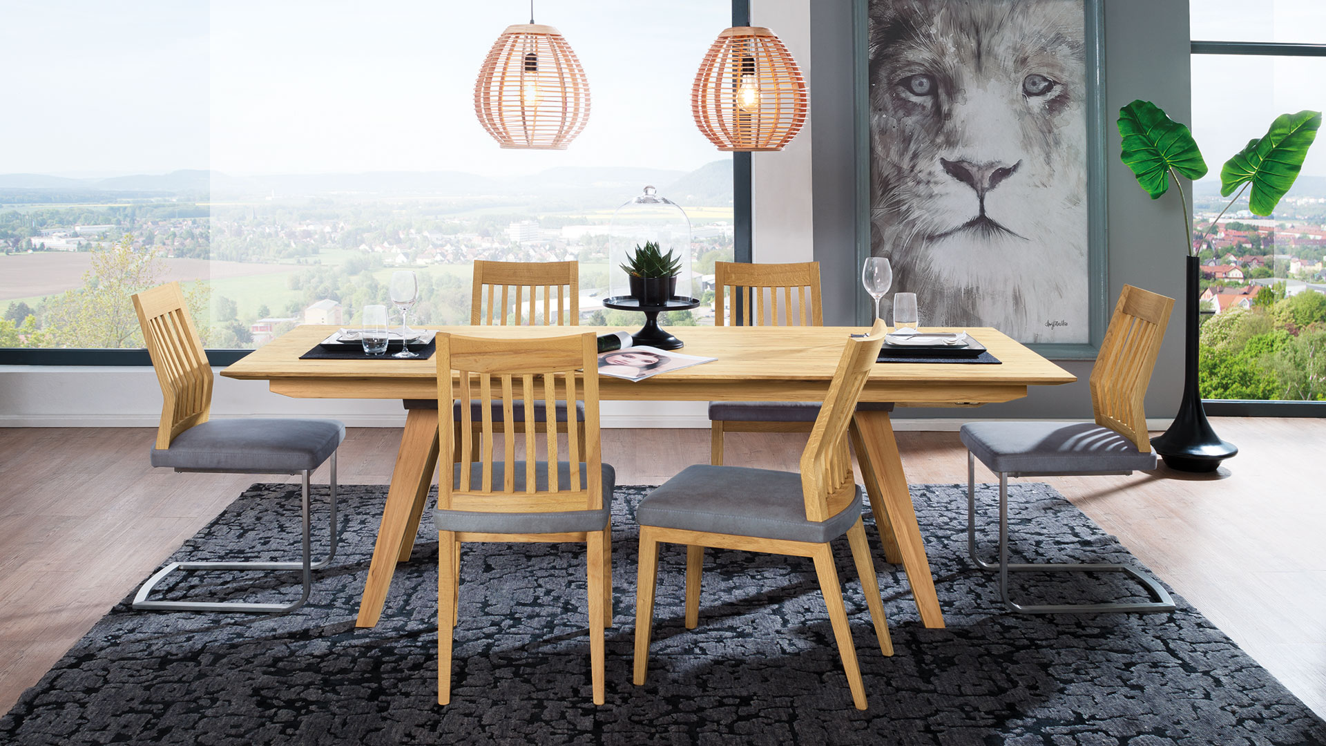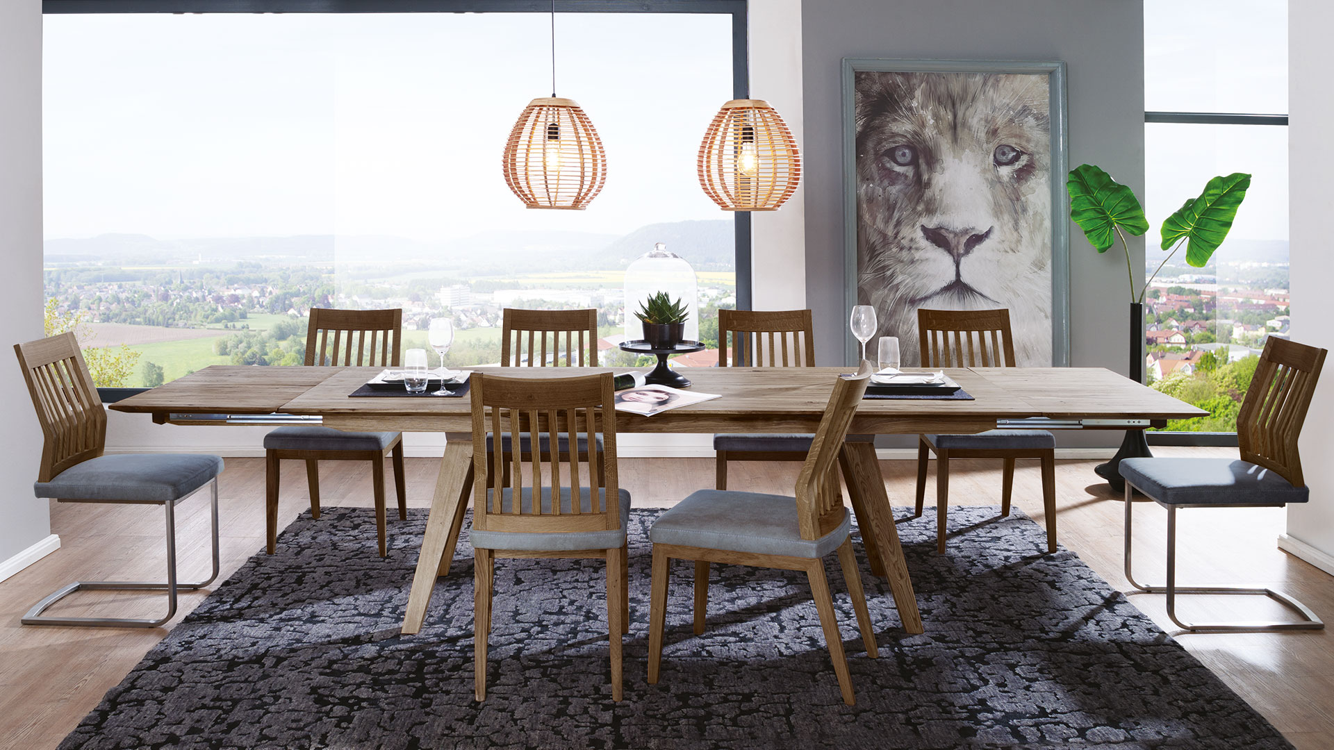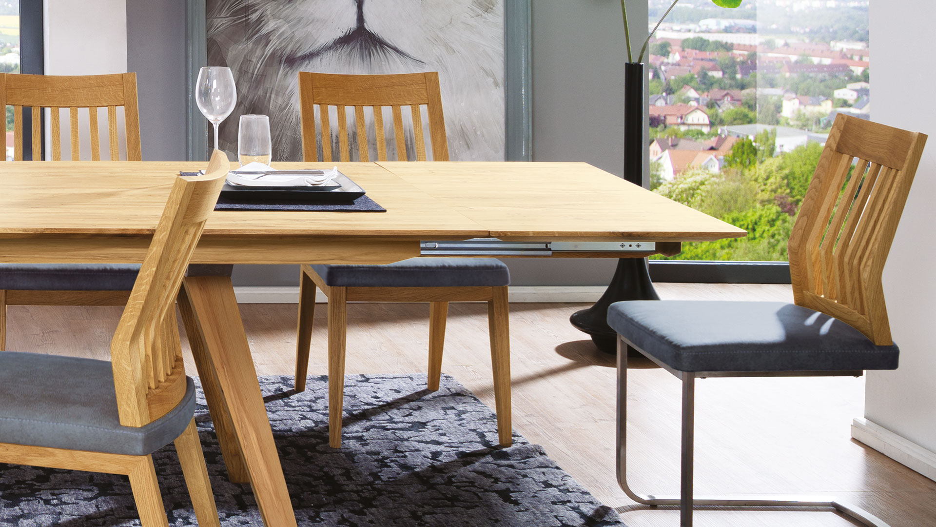 Bei den Holzarten bleiben keine Wünsche offen. Wählen Sie aus lebhafter Kernbuche und edler Wildeiche Ihren Lieblingstisch. Auch bei der Größe sind Sie ganz flexibel. Bei zwei Breiten und fünf Längen ist sicher auch Ihr Wunschmaß dabei. Sie bekommen oftmals lieben Besuch, möchten aber im Alltag keine Riesentafel im Esszimmer? Dann sind die Ausführungen mit ein- oder zweiseitigem Zargenauszug die perfekte Lösung! Lassen Sie sich von "Junta" verzaubern und freuen Sie sich auf viele fröhliche Stunden im Kreis Ihren Lieben.