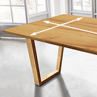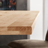 • Tischplatte wahlweise mit gerader Kante, Schweizer Kante oder rustikaler Baumkante