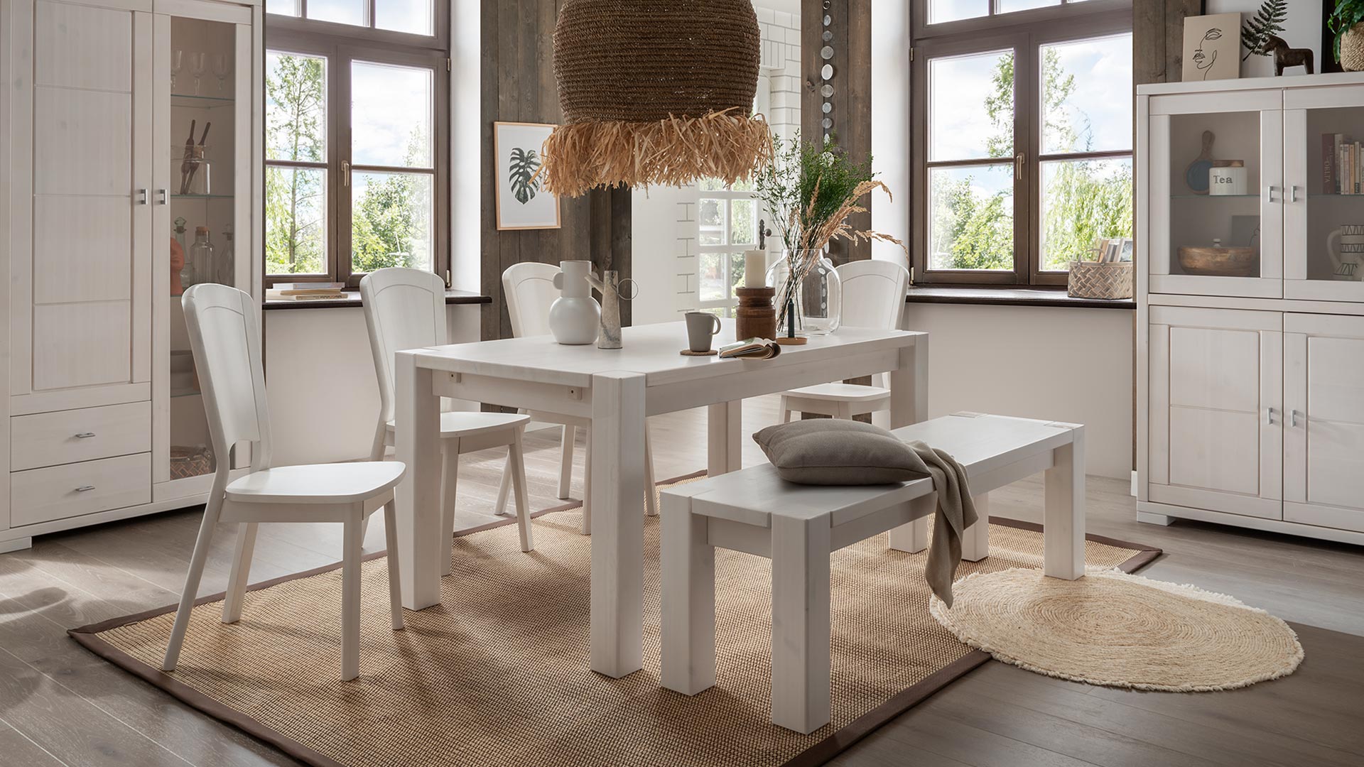 Mit den Möbeln aus unserem Programm "Mascella" entscheiden Sie sich für Produkte, die für ein gemütliches Ambiente im Ess- und Wohnbereich stehen. An diesem Tisch werden Sie gerne Ihr leckeres Essen genießen, Zeitung lesen, Spielabende erleben oder spannende Diskussionen führen.