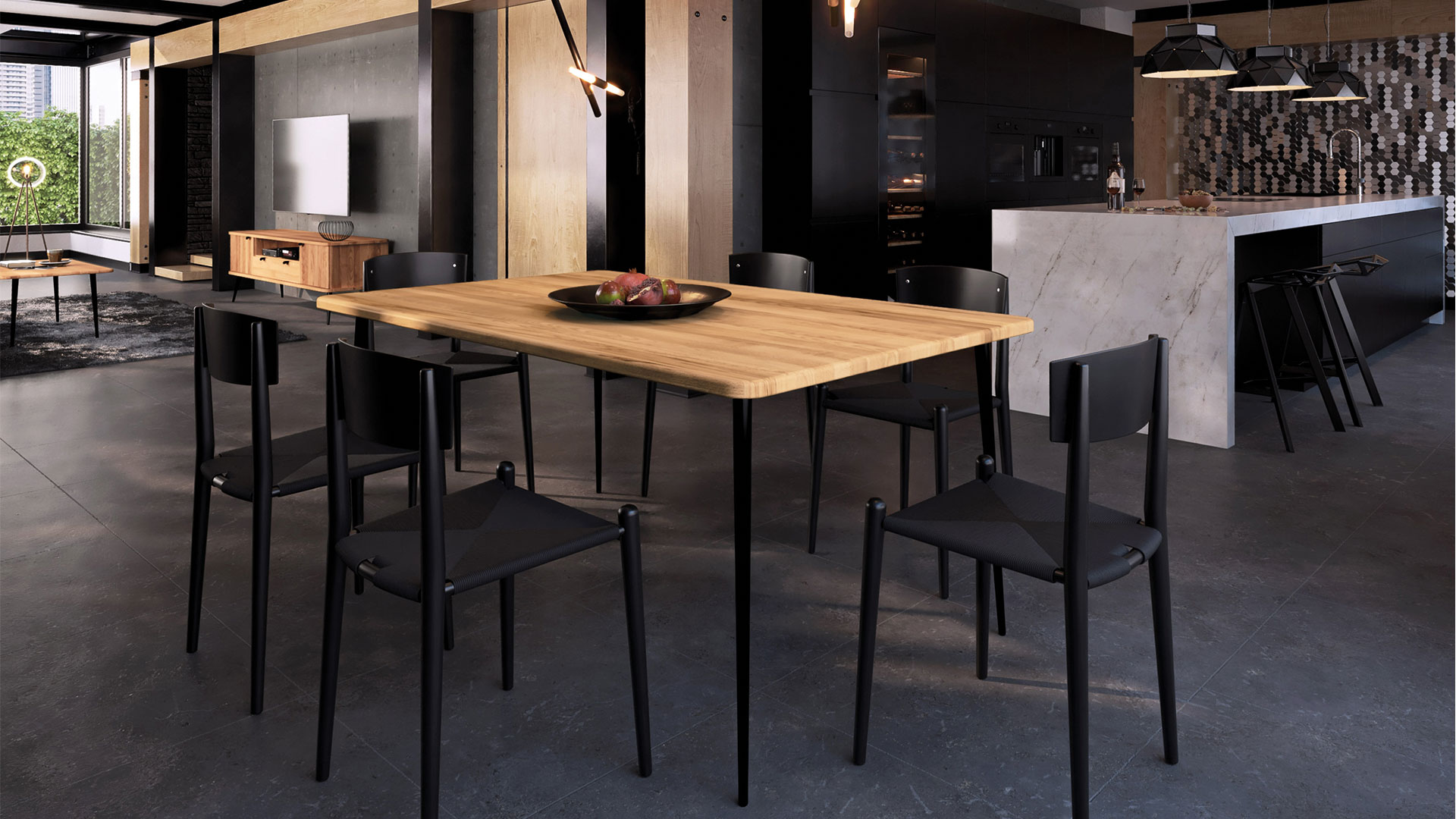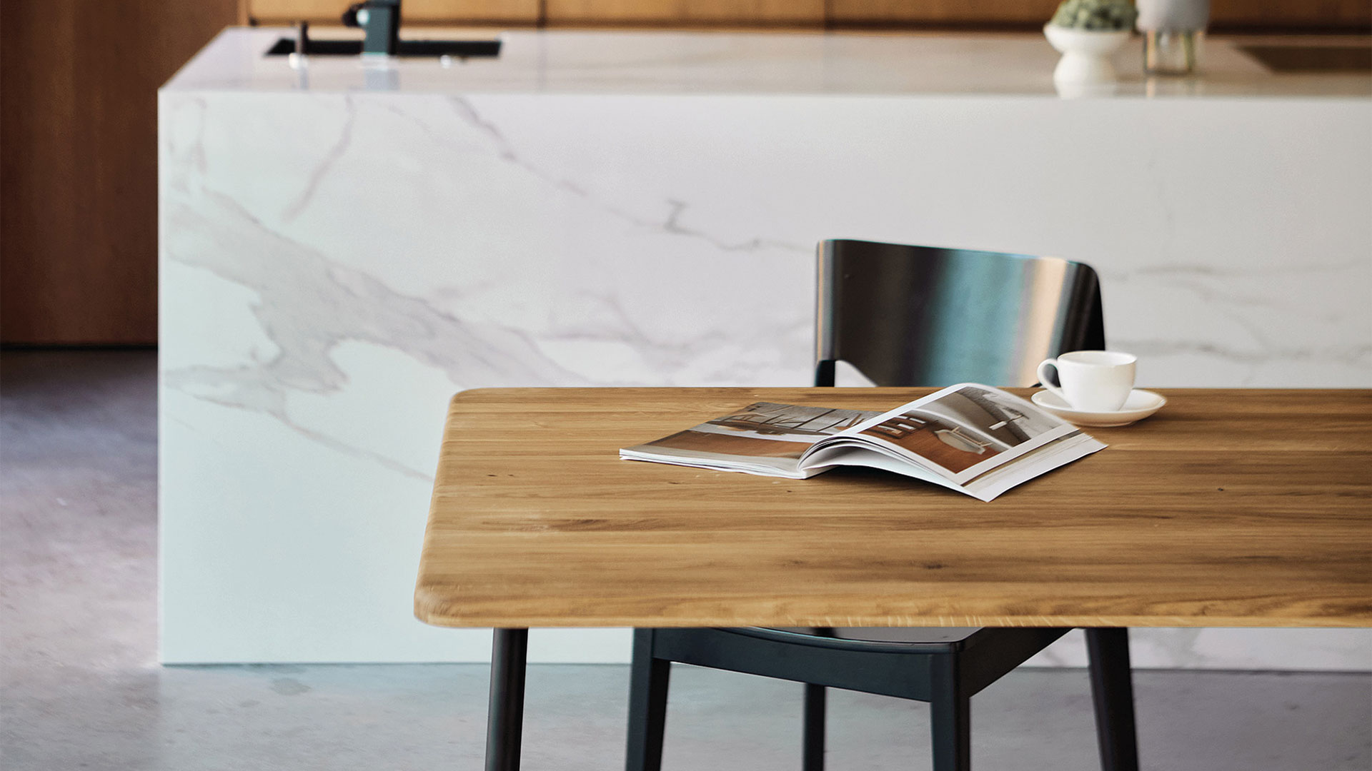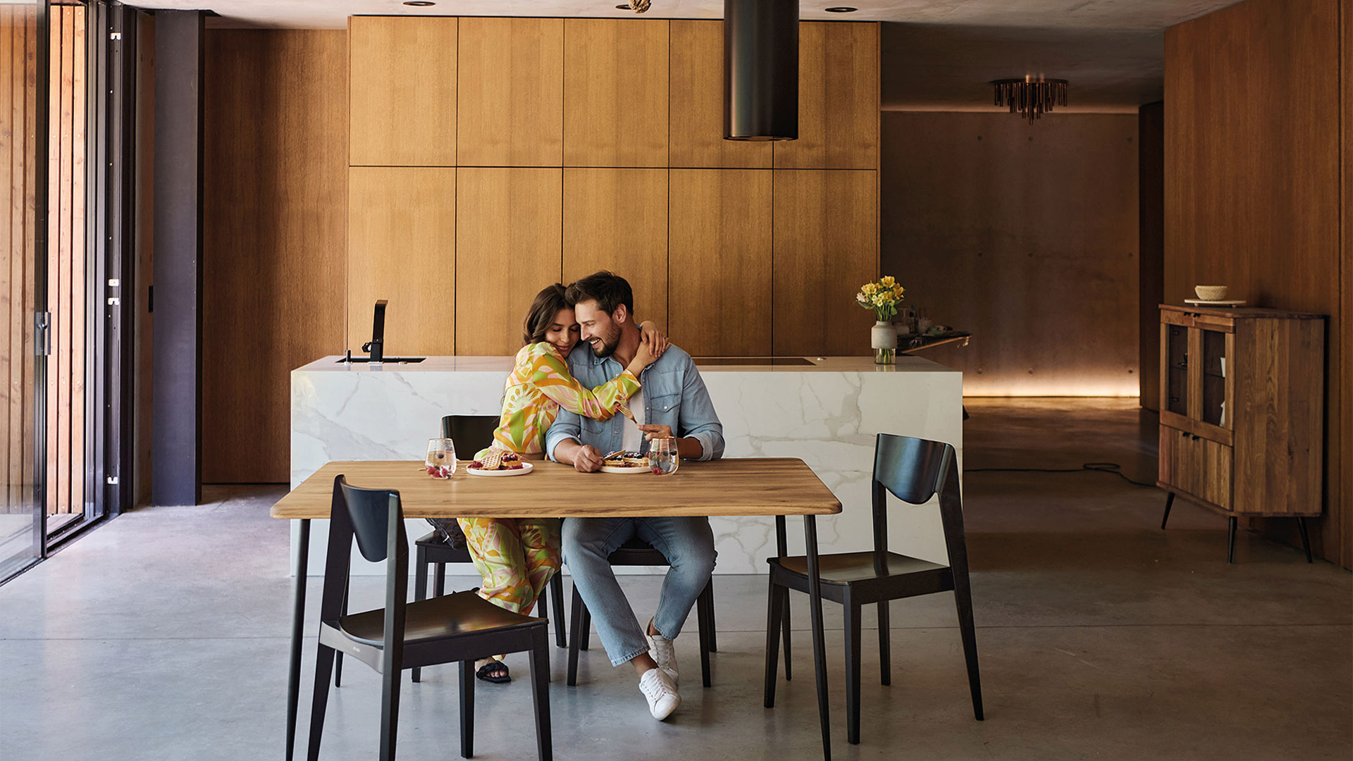Egal, ob im Ess- oder Wohnzimmer, der hochwertige Tisch mit interessantem Material-Mix macht immer eine gute Figur.