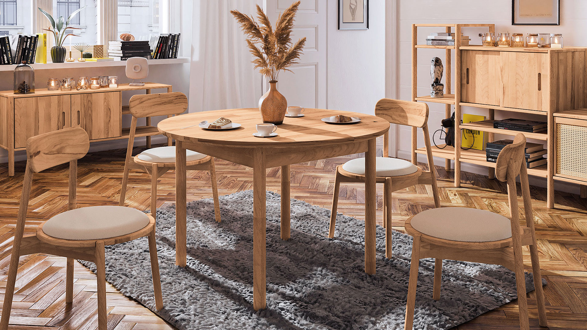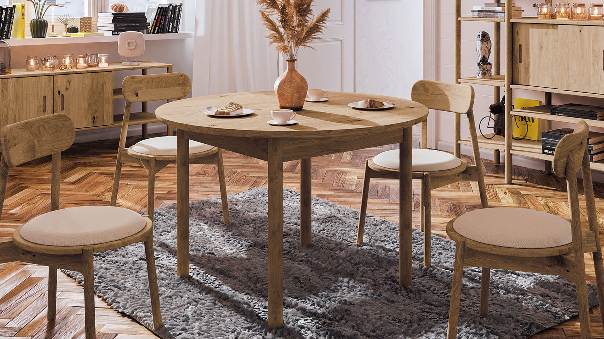 Tisch "Rota" bietet Ihnen beide Möglichkeiten in vielen Größen. Sowohl den runden als auch den ovalen Tisch erhalten Sie wahlweise mit praktischem Synchron-Auszug. Damit ist ganz bestimmt auch für Ihr Esszimmer der richtige Tisch dabei. Was "Rota" sonst noch auszeichnet?