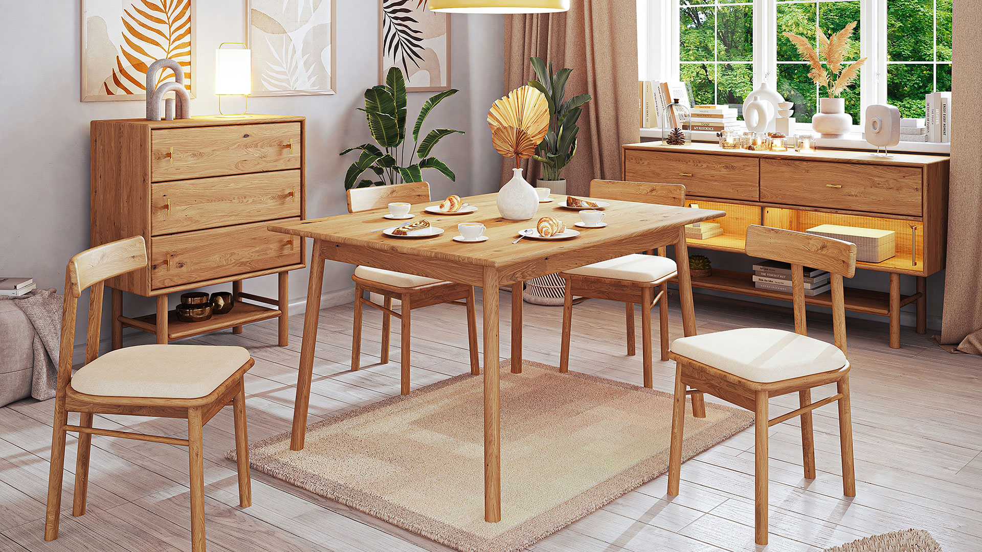 Wo sich Familie und Freunde versammeln, entsteht Wärme und Lebendigkeit. Esstisch "Serea" im klassischen Mid-Century-Stil begeistert durch klare Linien, edles Massivholz und eine Ausstrahlung, die jedes Esszimmer bereichert. Ob beim gemütlichen Frühstück oder beim festlichen Abendessen – er macht jede Mahlzeit zu einem besonderen Erlebnis.
