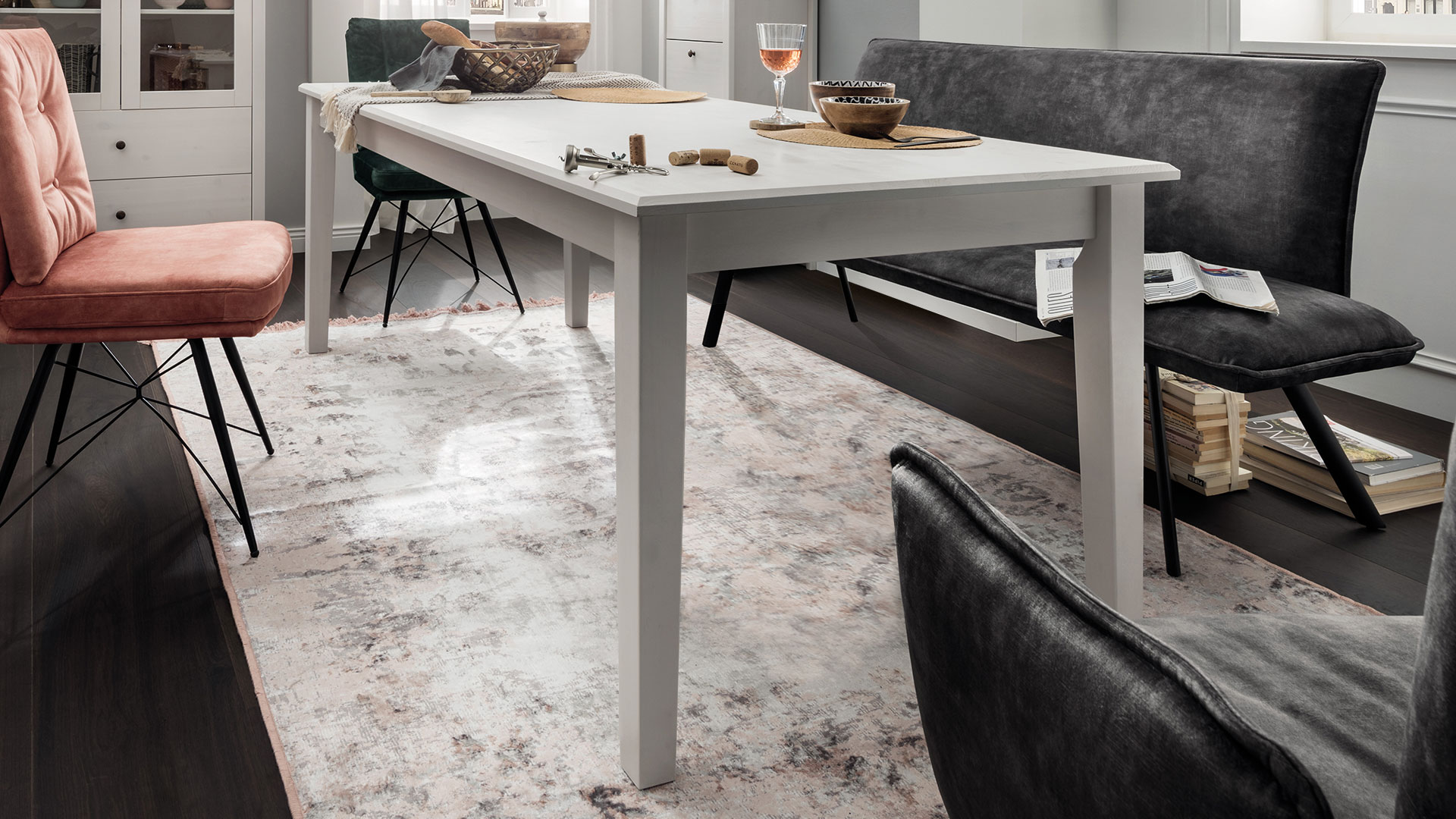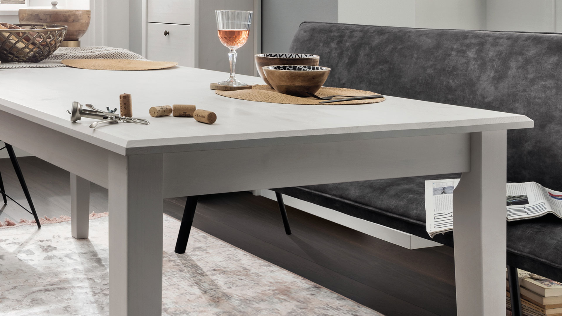 Das trendige, skandinavische Design zeigt sich in diesem Möbelstück durch klare Linien und eine bewusst schnörkellose Gestaltung. Sie möchten Ihren Tisch gerne noch einen Hauch pfiffiger? Dann entscheiden Sie sich für die weiße Oberfläche. Freuen Sie sich auf Ihren neuen Tisch und unzählige, gesellige Stunden im Kreis Ihrer Lieben.