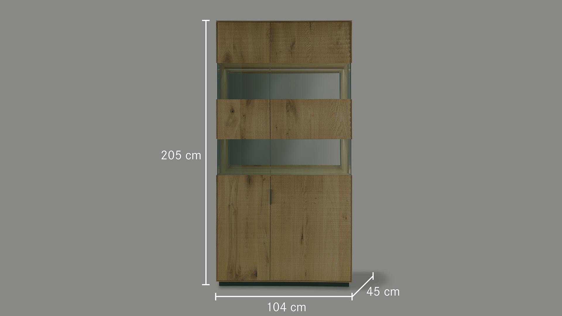 Verfügbar in zwei Varianten, bietet Vitrine "Eterna" nicht nur großzügigem Stauraum für Ihre wertvollen Stücke, sondern ist ein wahrer Blickfang für Ihr Zuhause. Lassen Sie sich von ihrer zeitlosen Schönheit verzaubern!