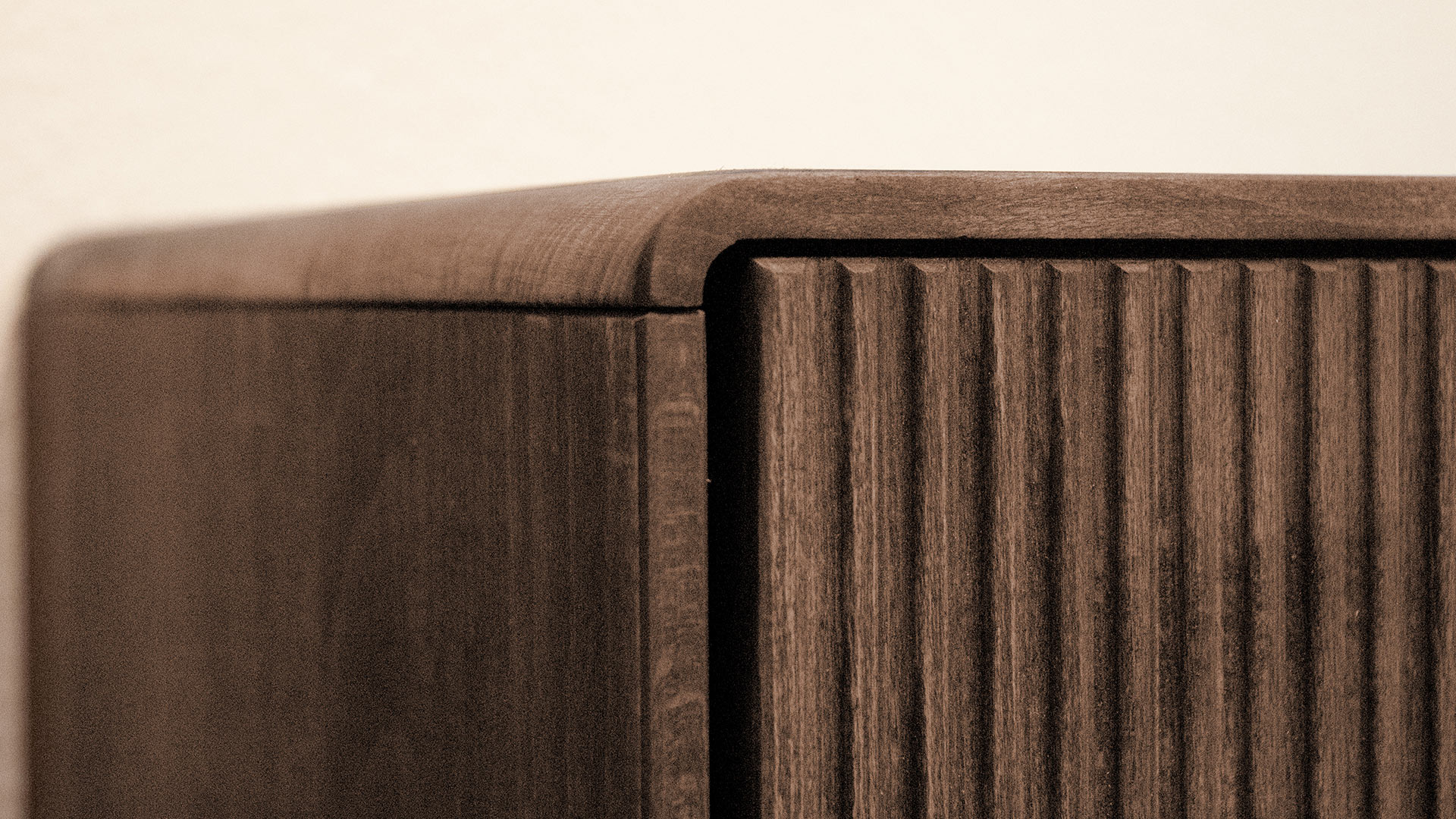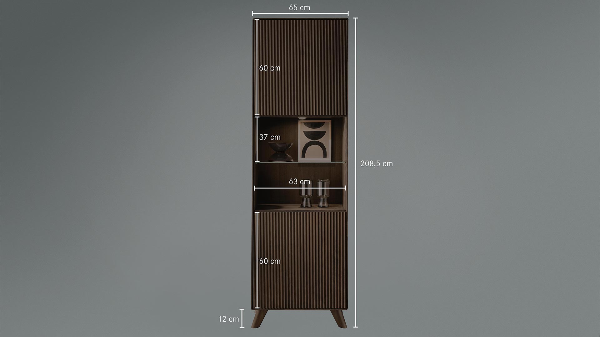 Die Vitrine "Lado" verbindet modernes Design mit durchdachter Funktionalität. Gefertigt aus massivem Kernbuchenholz und veredelt mit einem warmen Tabak-Finish, bringt sie eine natürliche Eleganz in Ihr Zuhause. Die sanft gerundeten Kanten sorgen für eine harmonische Optik, während die geriffelten Türen und die schräg angesetzten Füße moderne Akzente setzen und damit das Konzept gekonnt aufwerten.