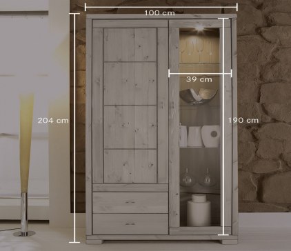 Die Variante mit Glastür und die breite Variante bieten zusätzlich eine reizvolle Ausstellungsfläche hinter den Holztüren mit Glaseinsätzen. Die hochwertigen Holztüren sind in reizvoller Kassetten-Optik gestaltet. Alle Holz- und Glasböden sind mittels Reihenlochbohrung höhenverstellbar, so dass Sie die Inneneinteilung Ihrer Vitrine individuell anpassen können.