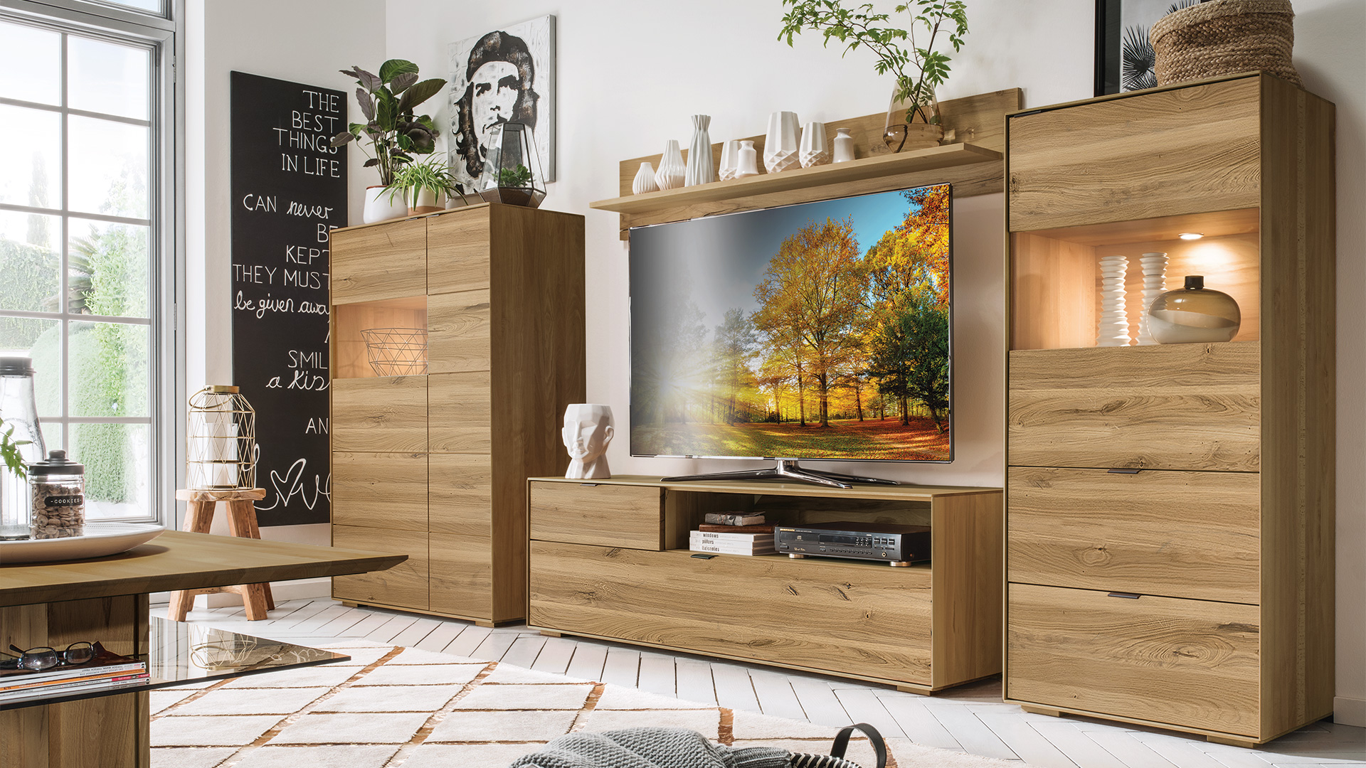 Alle präzise gearbeiteten Möbel aus dem Programm "Senera" erhalten Sie wahlweise in edler Wildeiche oder extravaganter Wildkernbuche. Bei der Wildkernbuche handelt es sich um sorgfältig selektiertes Kernbuchenholz mit sehr lebhafter Maserung. Risse und Äste sorgen zusätzlich für einen unverwechselbaren Holz-Charakter. Die Ablageplatte ist aus etwas ruhigerer Wildkernbuche gearbeitet. So entsteht ein effektvoller Kontrast zur stark gemaserten Rückseite. "Senera" erhalten Sie exklusiv bei allnatura.