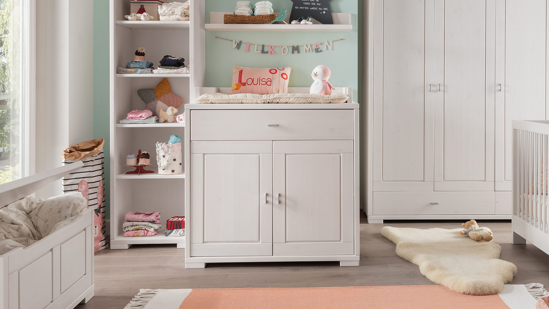 Auf der großzügigen Wickelfläche mit stabiler Rundum-Absturzsicherung liegt Ihr Baby bequem und geborgen. Alle Wickelutensilien und die Wäsche sind in der geräumigen Schublade mit stabilem Teilauszug und dem Schrankfach darunter griffbereit verstaut. Noch bequemer wird das Wickeln, wenn Sie die Wickelkommode mit dem als Zubehör erhältlichen praktischen Wandboard ergänzen. Und weiteren Stauraum bietet das optionale Zusatzfach, das geschickt den freien Raum hinter dem Kommodenteil nutzt. Die gemütliche Kiefernholz-Wickelkommode erhalten Sie im schönen Naturton gelaugt/geölt, in frischem Weiß lasiert oder gänzlich unbehandelt. Ihr doppelter Nutzen: Bei "Piccolino" lässt sich der Wickelaufsatz mit wenigen Handgriffen abmontieren. So können Sie die schöne Kommode weiterverwenden, wenn Ihr Baby aus dem Windelalter herausgewachsen ist. Und das im ganzen Haus. Denn die modern schnörkellose Kassettenoptik passt nicht nur ins Kinderzimmer.