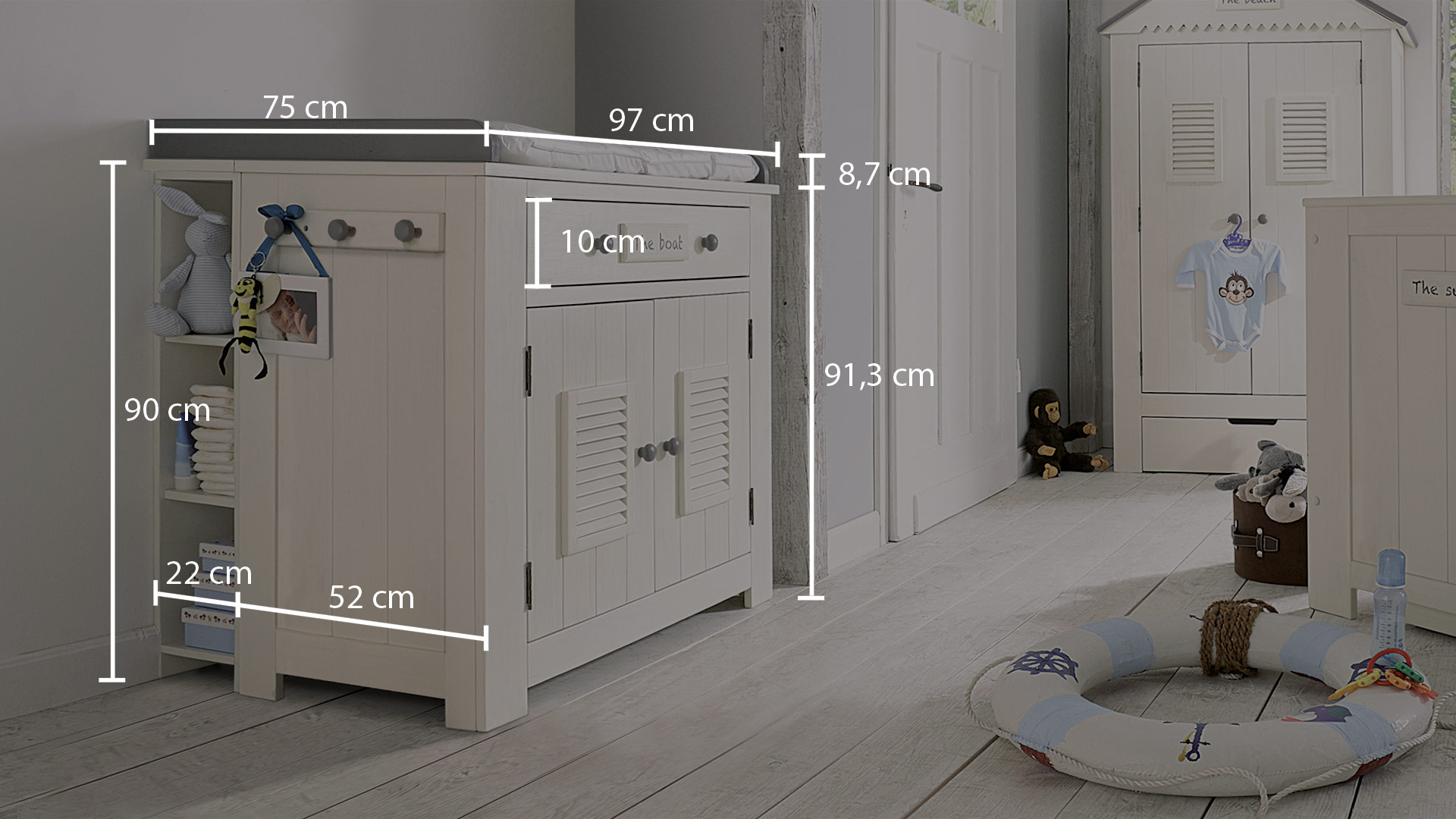 • detailreich gestaltete Wickelkommode in maritimer Optik