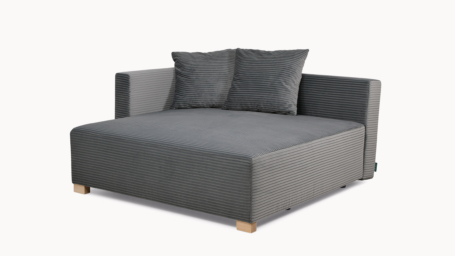 Ihr Sofa, Ihr Stil: Mögen Sie es elegant und klar? Dann ist das natürlich-glatte Baumwoll-Leinen-Gewebe "Hot Madison" genau richtig. Oder lieben Sie den entspannten Lounge-Look? Dann wird Sie der weiche Cord-Bezug aus nachhaltigen Recycling-Fasern begeistern. Beide Varianten sind hautfreundlich, hochwertig und langlebig. Dank beidseitig montierbarer Armlehne passt sich Ihre Wohninsel "Plaza" flexibel an Ihre Wohnsituation an.